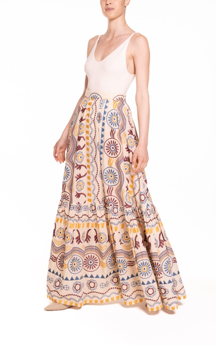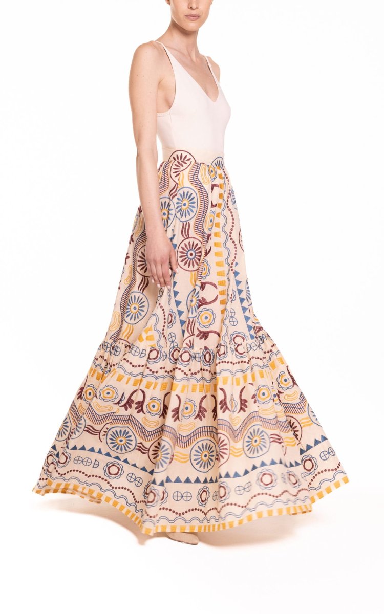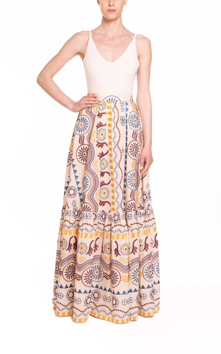Gonna super femminile e senza tempo, ricamata, con vita alta e balza finale.โจPerfetta da abbinare ad un top dello stesso tessuto per un look romantico o per unโoccasione speciale. Vestibilitร ampia e morbida, per sentirsi sempre bene. Questo capo รจ un connubio di raffinatezza e stile classico.