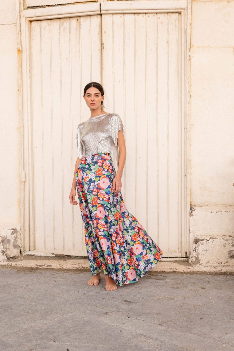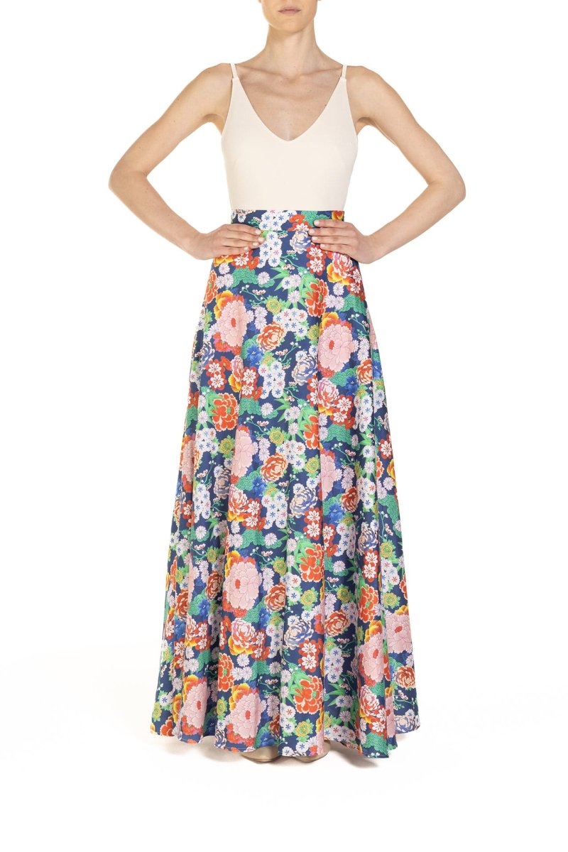 La gonna lunga sartoriale, a ruota, in cotone leggero, dona una nota vibrante alla Primavera-Estate Poupine con le nuove stampe disegnate e dipinte a mano: vive, intriganti, belle, da amare e indossare sempre. Permette di creare outfit eleganti o casual data la sua grandissima versatilitร . Indossarla vi farร sentire speciali e piene di gioia di vivere.