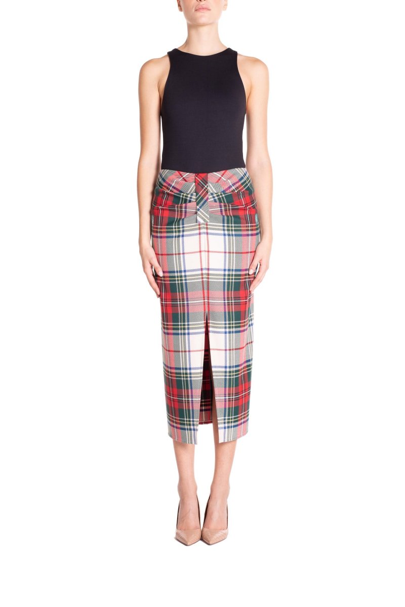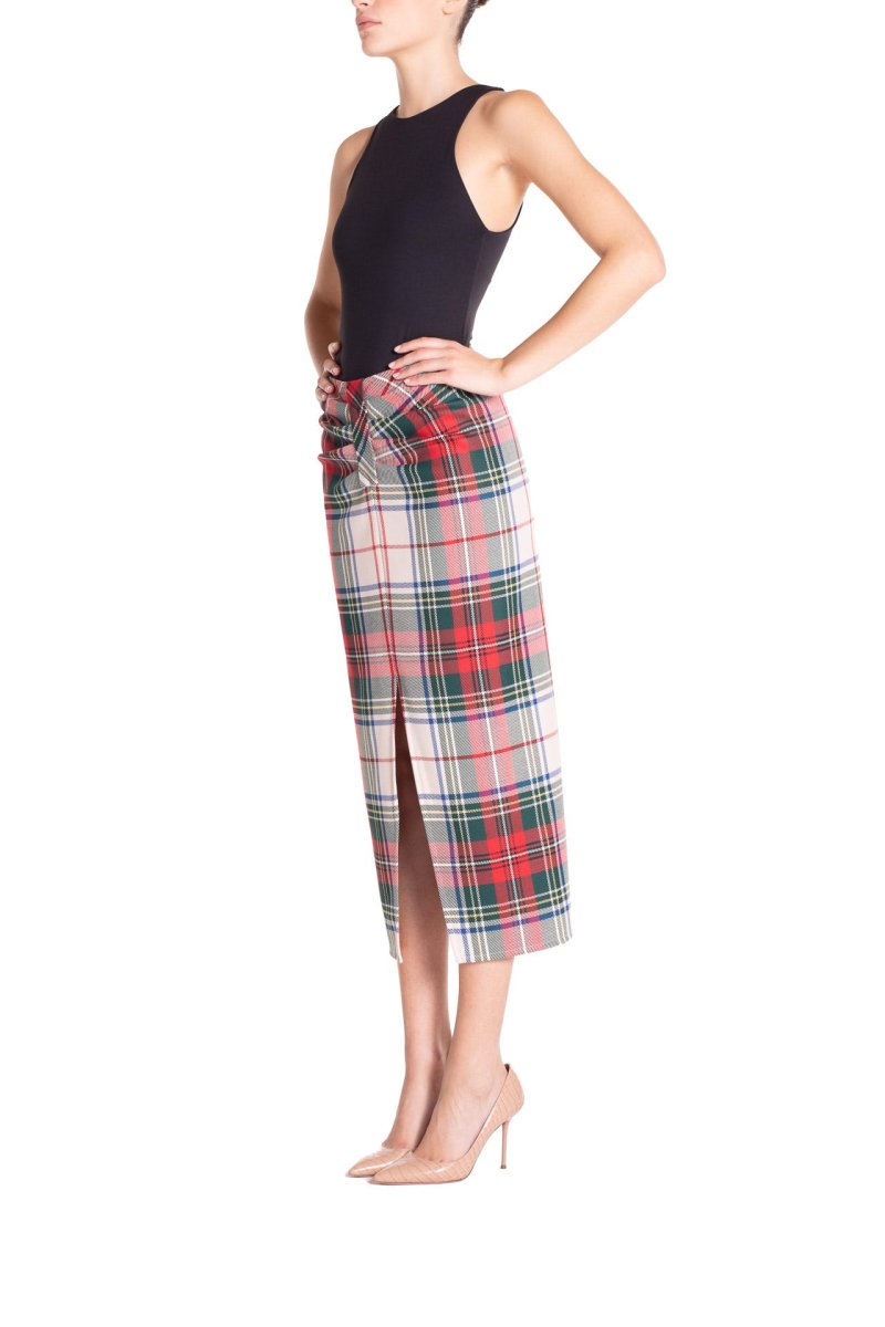 Gonna midi in tessuto scozzese con vita alta e arricciature centrali che valorizzano la silhouette con eleganza. La lunghezza midi dona equilibrio e versatilitร , rendendo questo capo perfetto per look casual chic o outfit piรน raffinati. Disponibile in diverse varianti di tartan, si abbina facilmente a maglioni oversize e sneakers per un look quotidiano, oppure a camicie in seta e stivali alti o dรฉcolletรฉ per un tocco sofisticato.