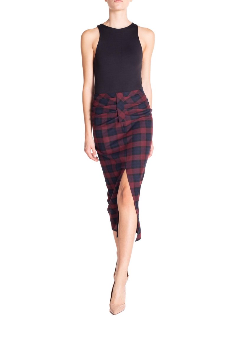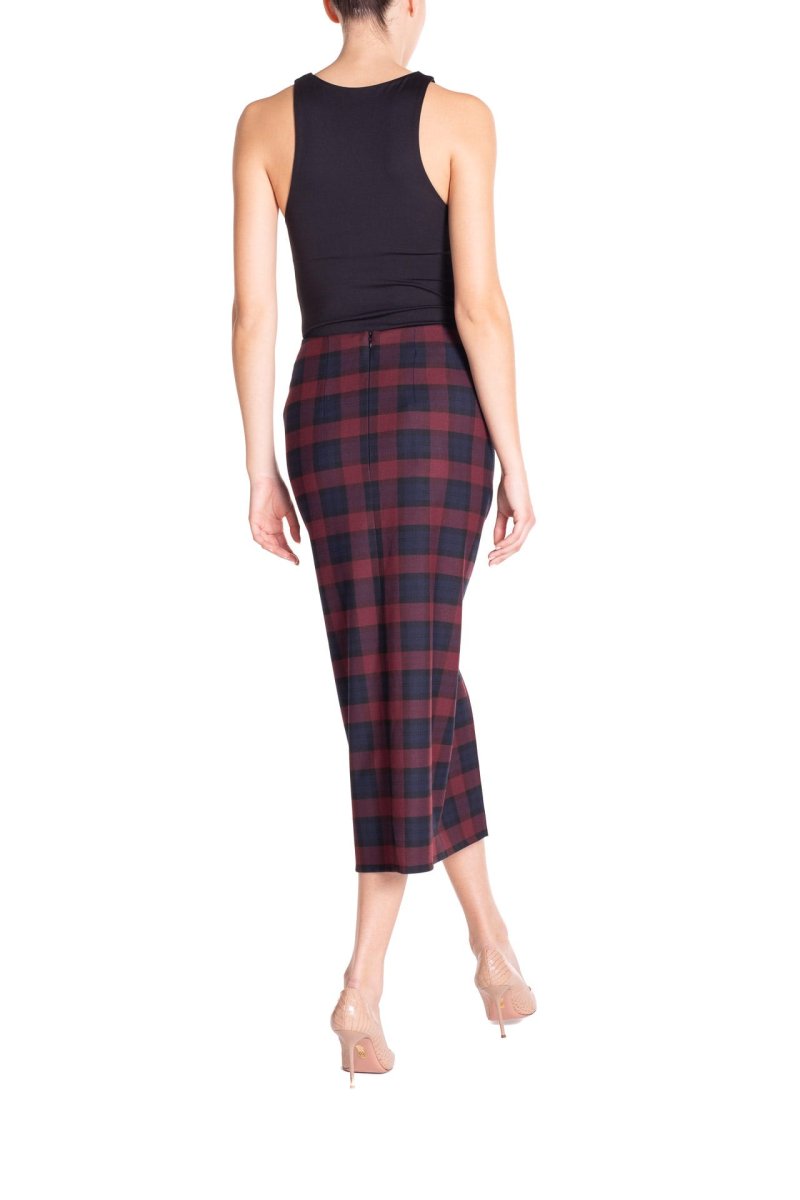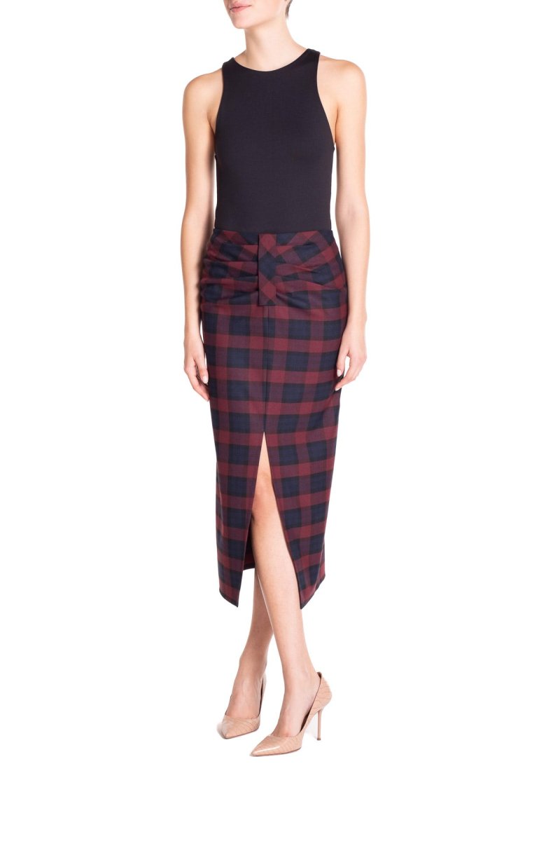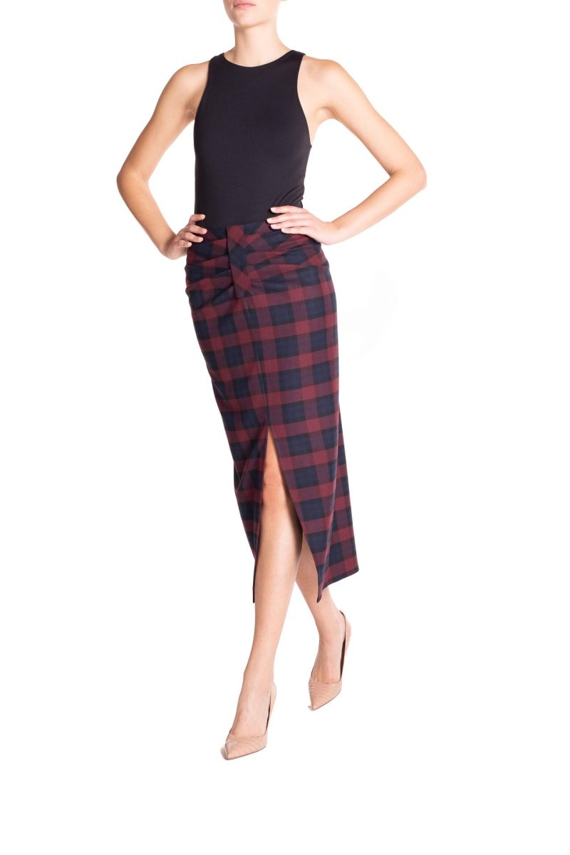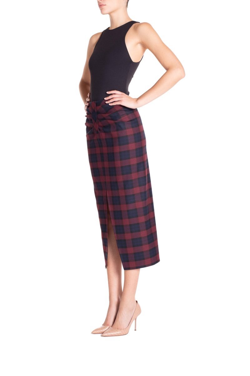 Gonna longuette arricciata Tartan Blu e Bordeaux