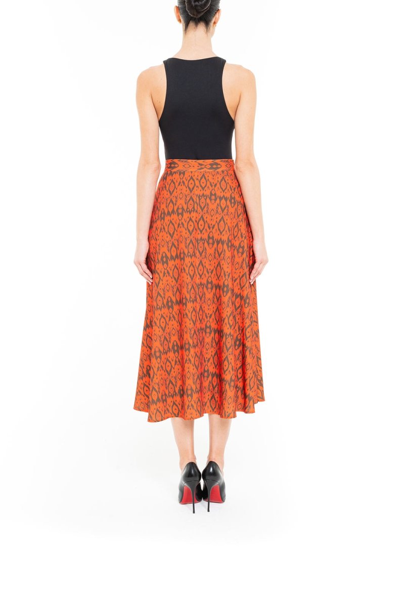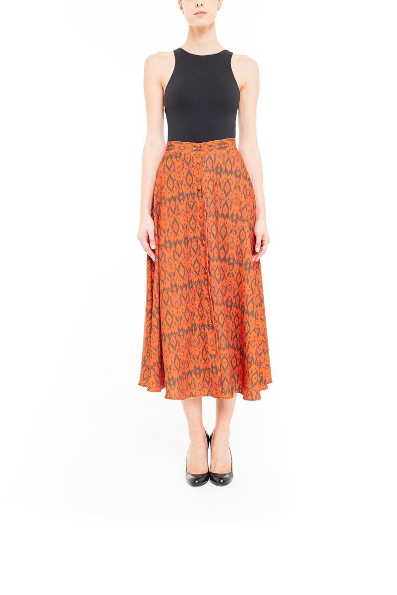 Gonna longuette con bottoni ikat Arancio e Marrone