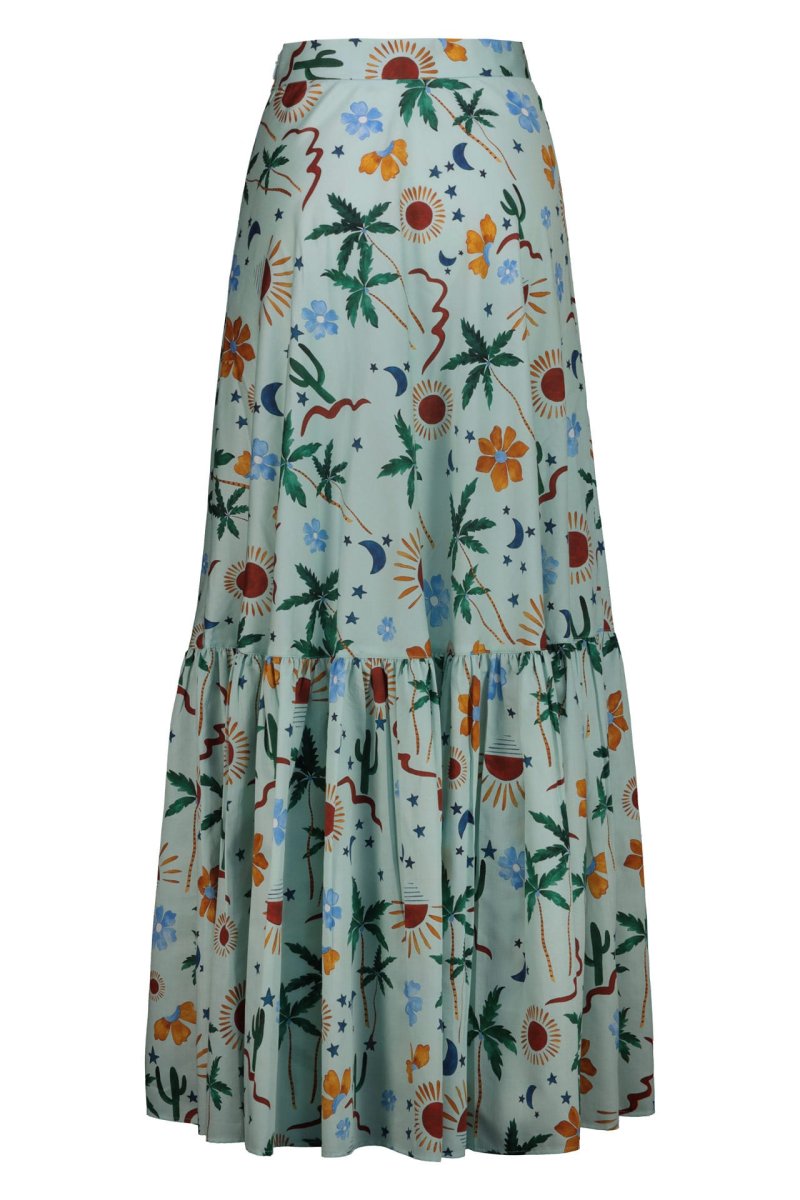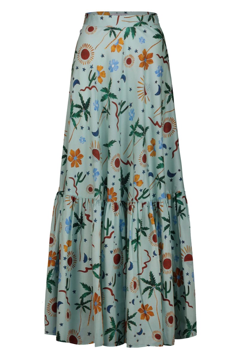 Gonna lunga a ruota con balza Fantasia Cactus