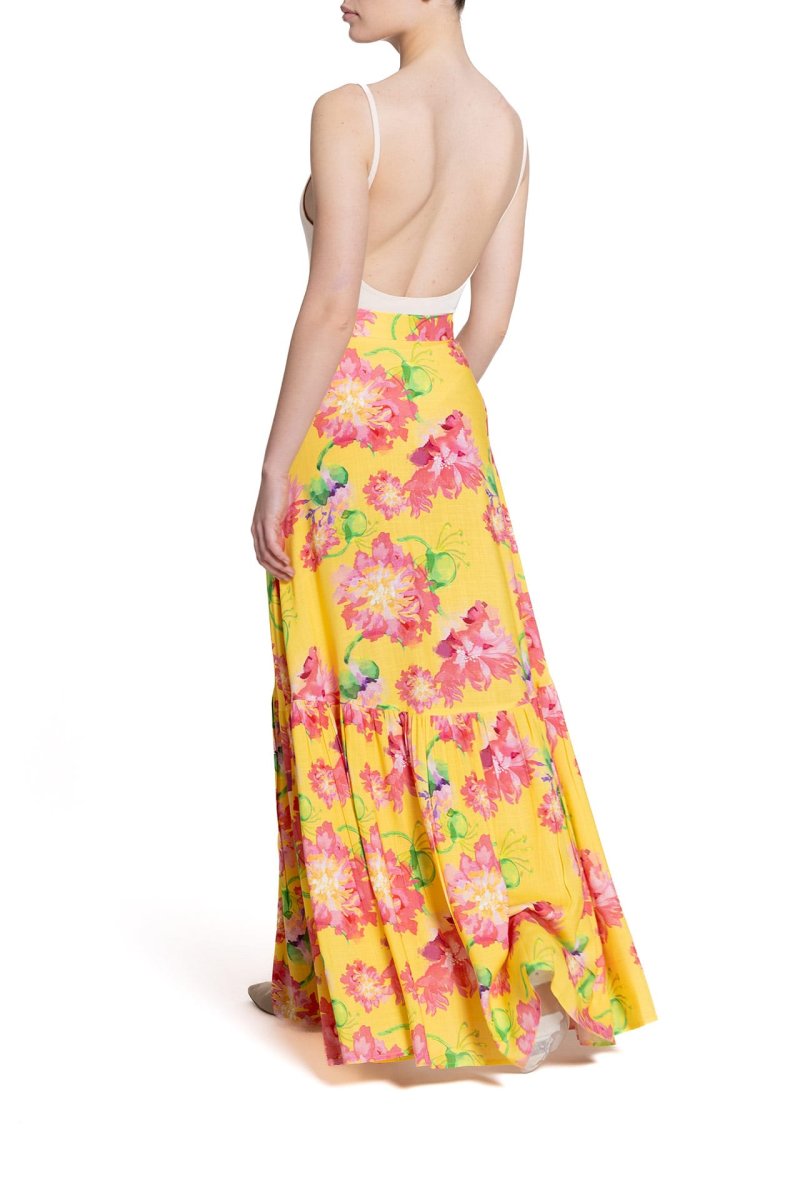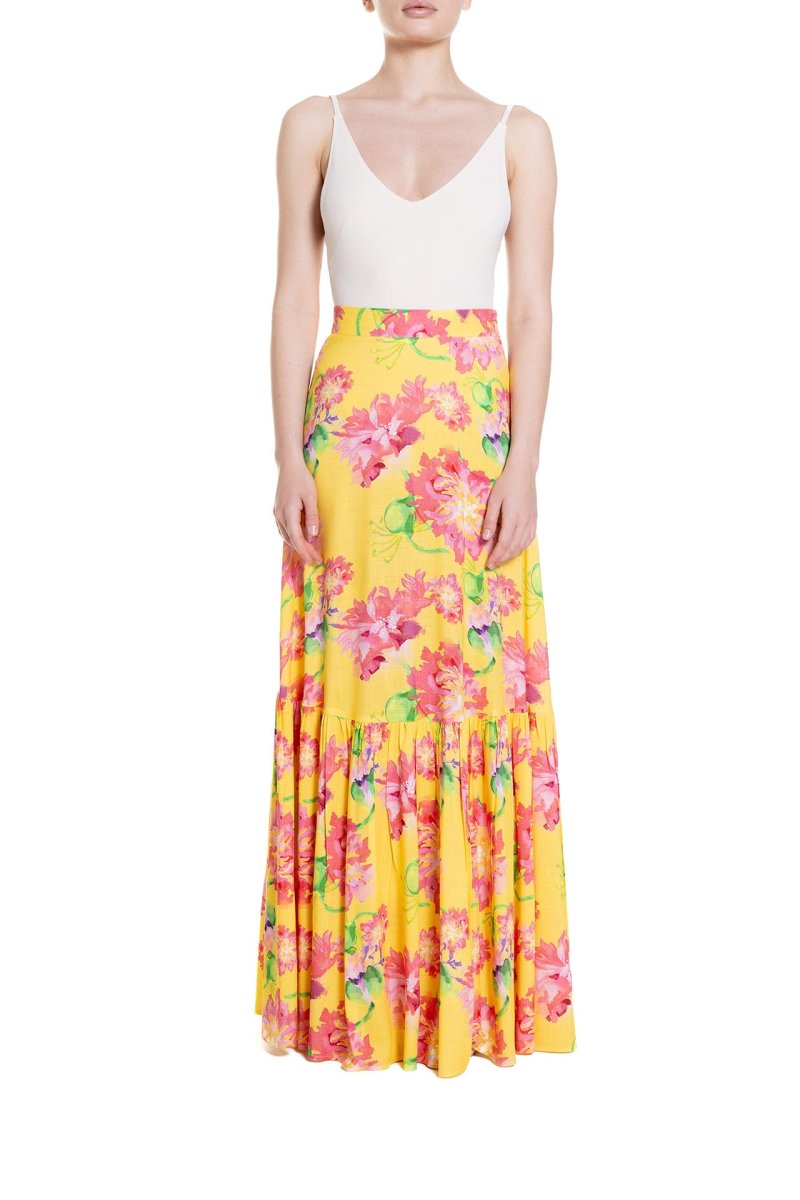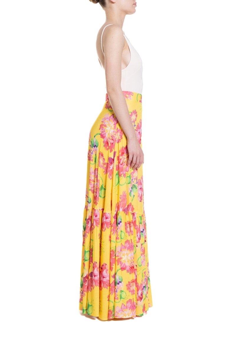 Gonna lunga a ruota con balza Fantasia Fiore Rosa