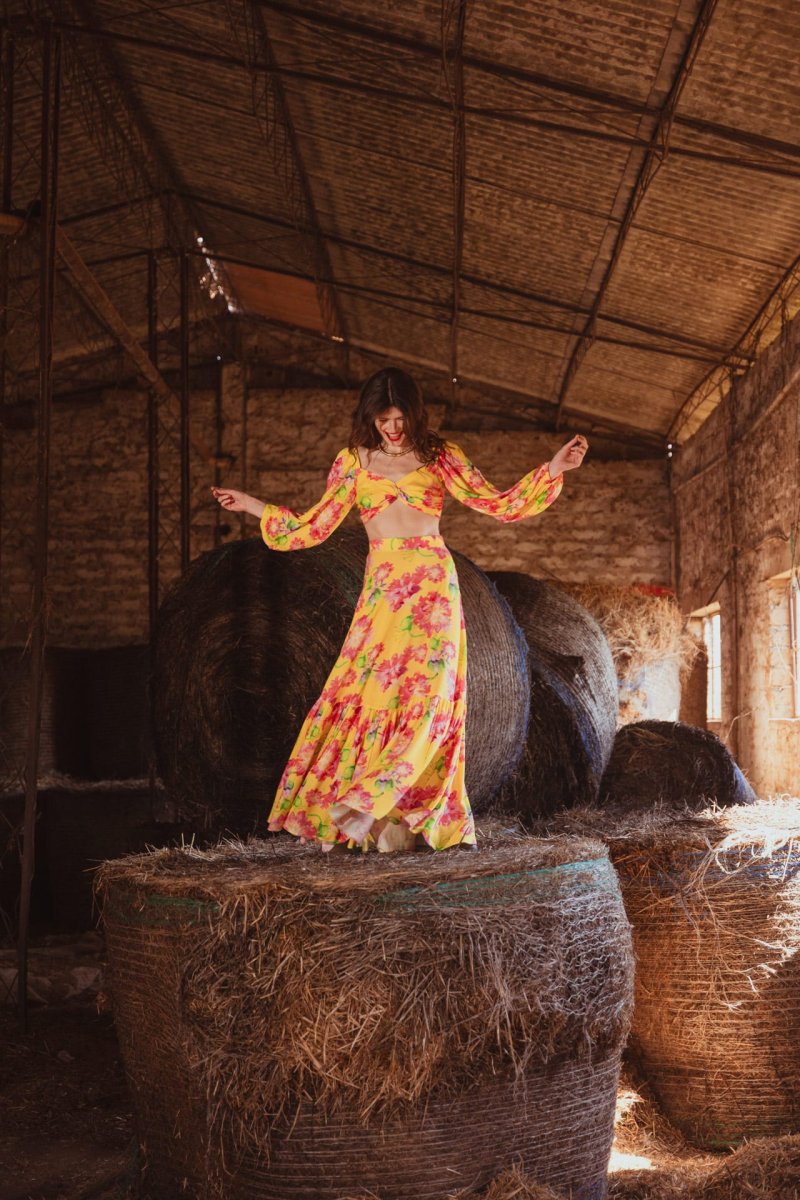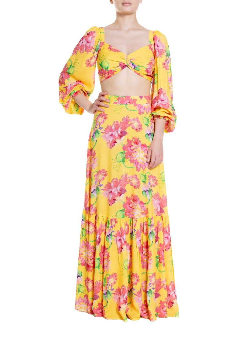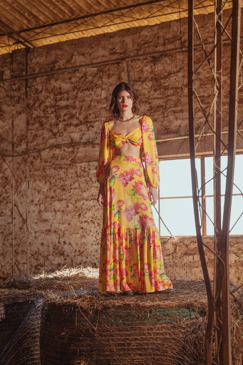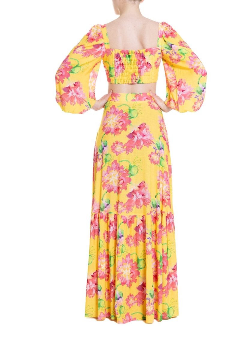 Gonna lunga a ruota con balza Fantasia Fiore Rosa