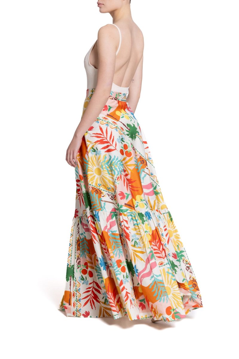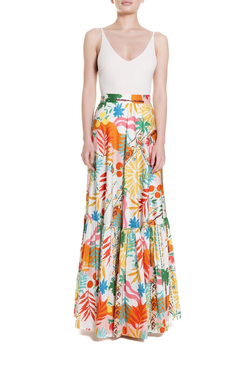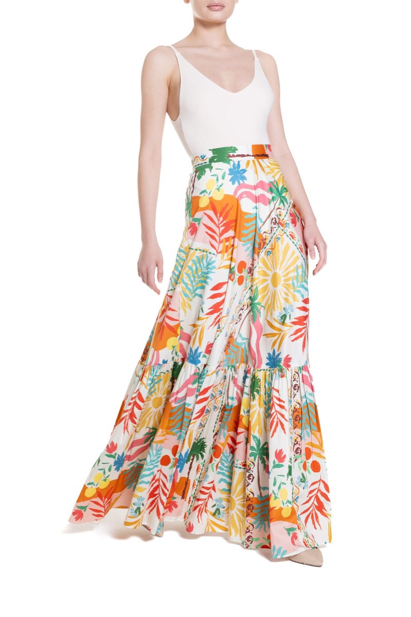 Gonna lunga a ruota con balza Fantasia Palme