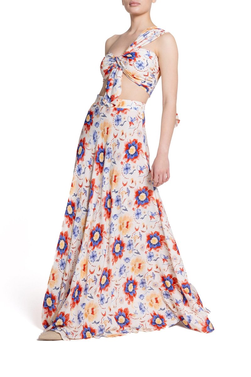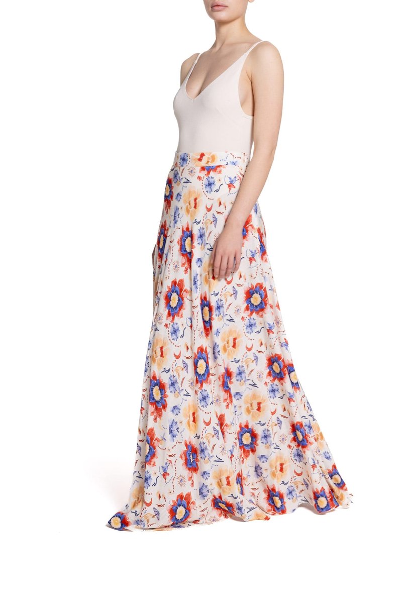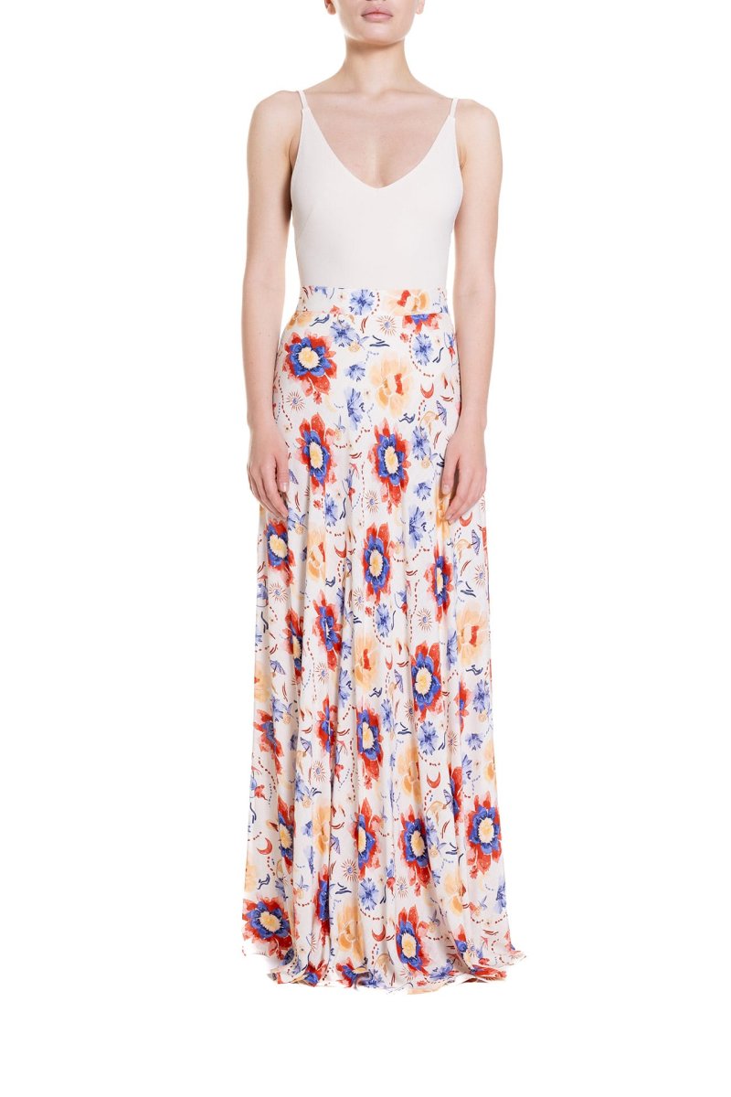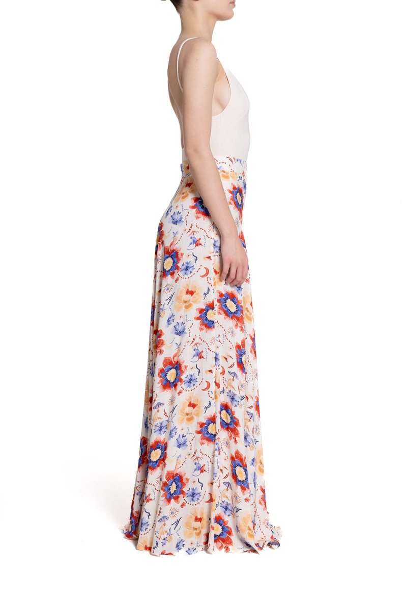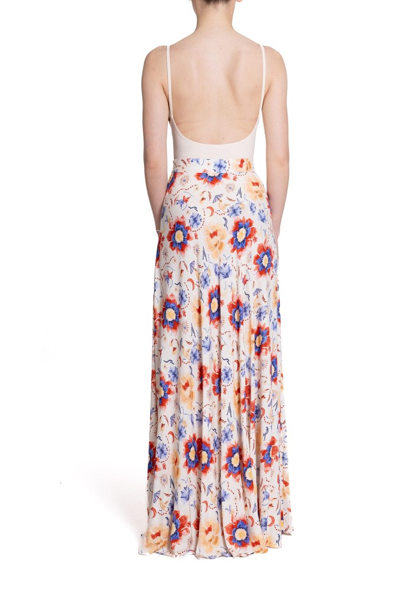 Gonna lunga a ruota semplice Fantasia Fiore Blu