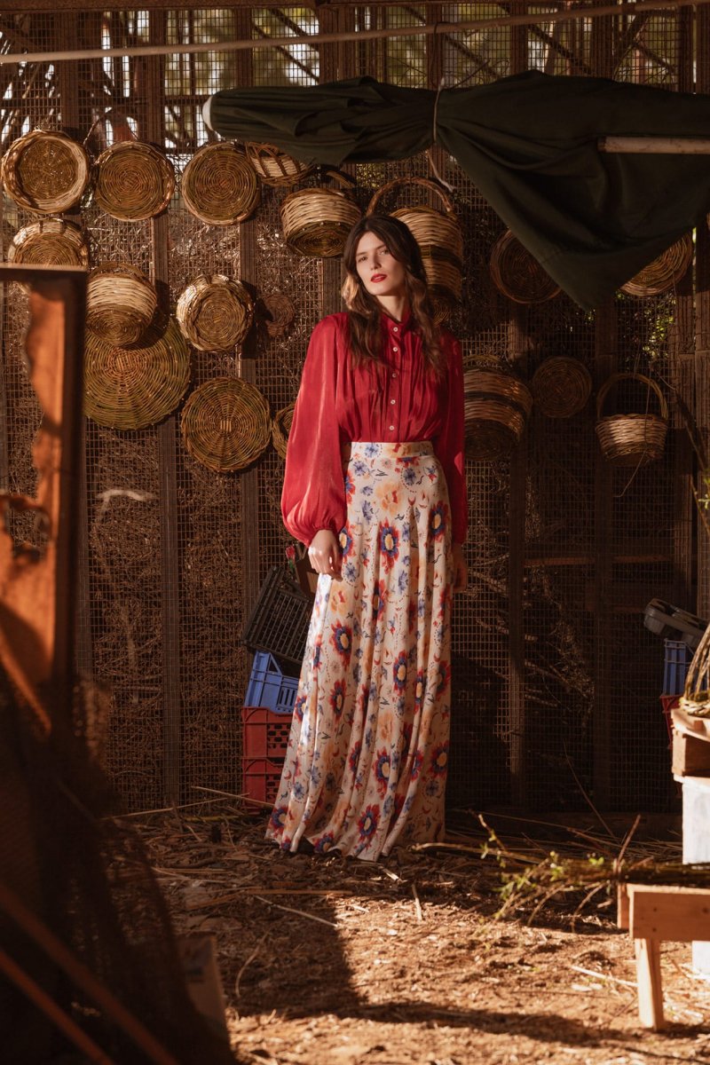 La gonna lunga sartoriale, a ruota, in viscosa, dona una nota vibrante alla Primavera-Estate Poupine con le nuove stampe disegnate e dipinte a mano: vive, intriganti, belle, da amare e indossare sempre. Permette di creare outfit eleganti o casual data la sua grandissima versatilitร . Indossarla vi farร sentire speciali e piene di gioia di vivere.