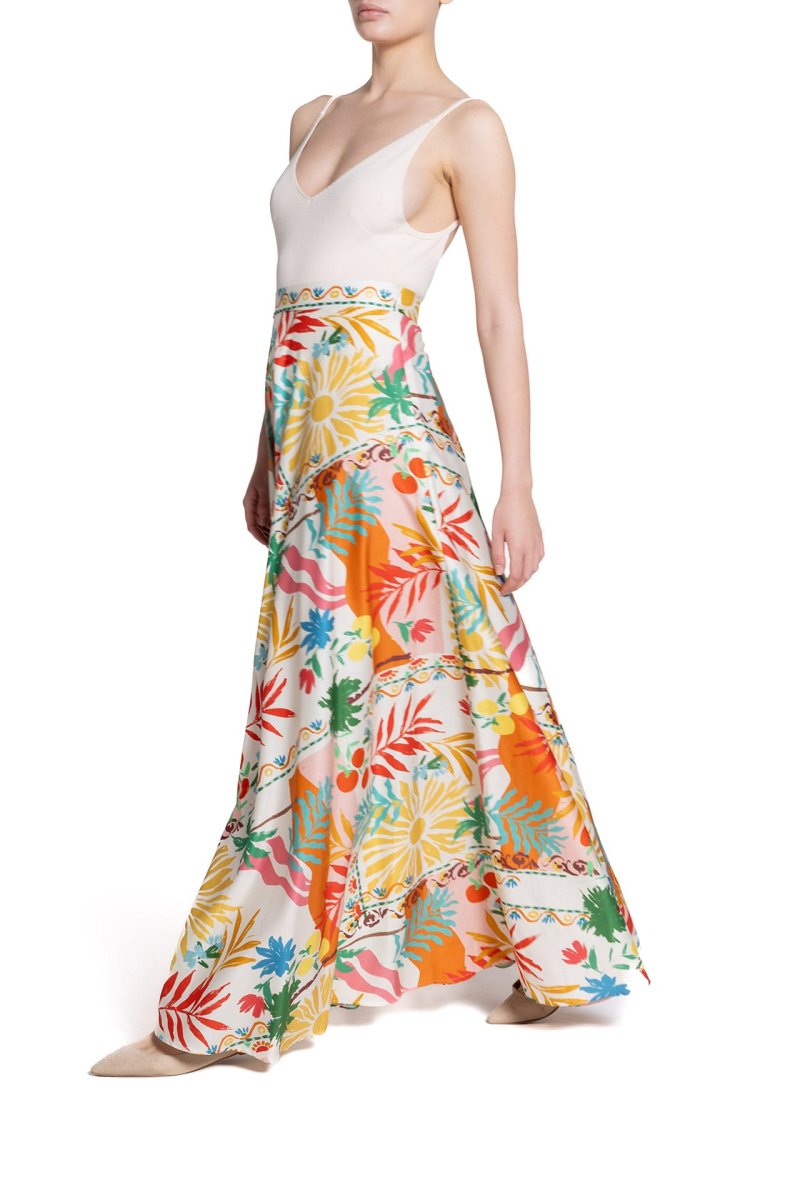 La gonna lunga sartoriale, a ruota, in cotone leggero, dona una nota vibrante alla Primavera-Estate Poupine con le nuove stampe disegnate e dipinte a mano: vive, intriganti, belle, da amare e indossare sempre. Permette di creare outfit eleganti o casual data la sua grandissima versatilitร . Indossarla vi farร sentire speciali e piene di gioia di vivere.