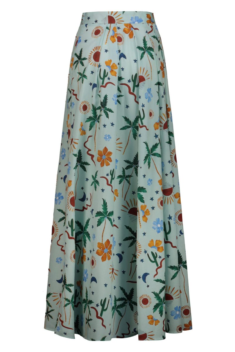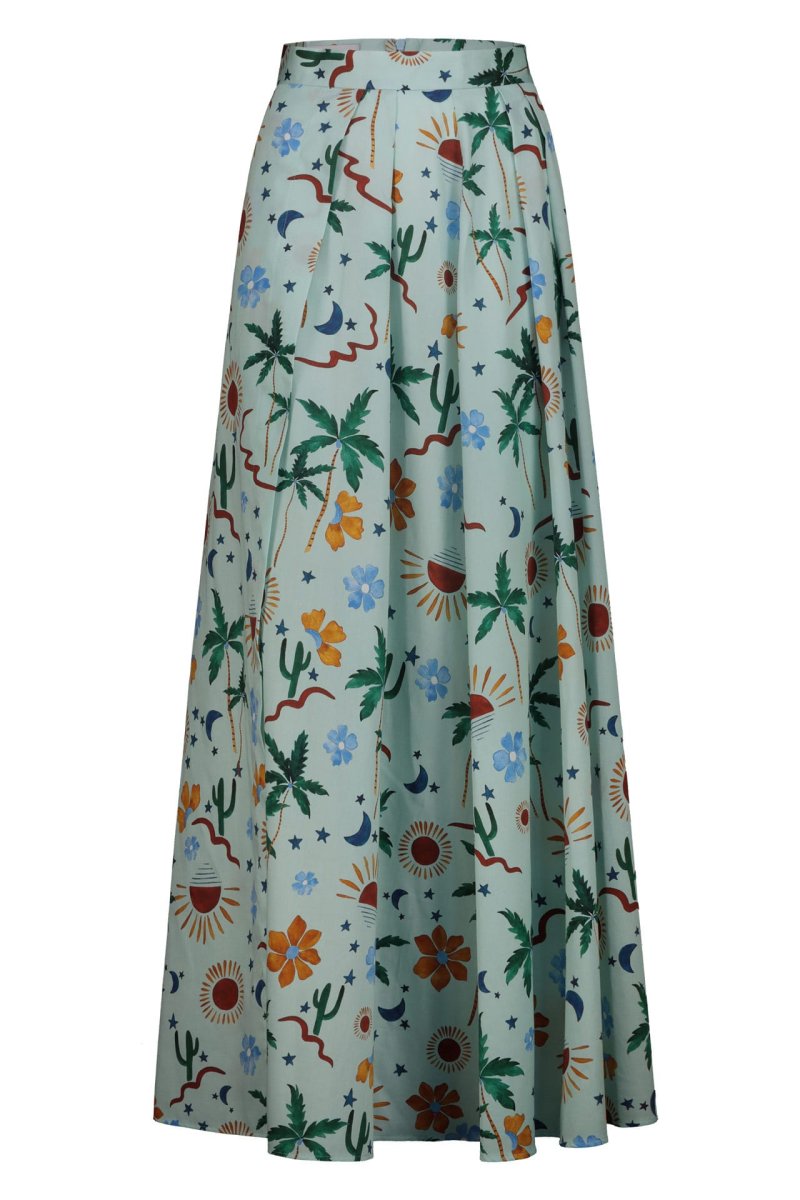 Gonna maxi a ruota con spacco laterale Fantasia Cactus