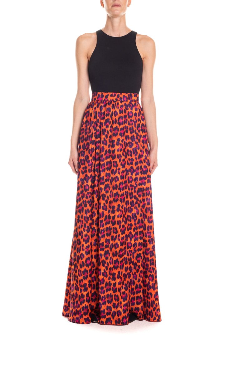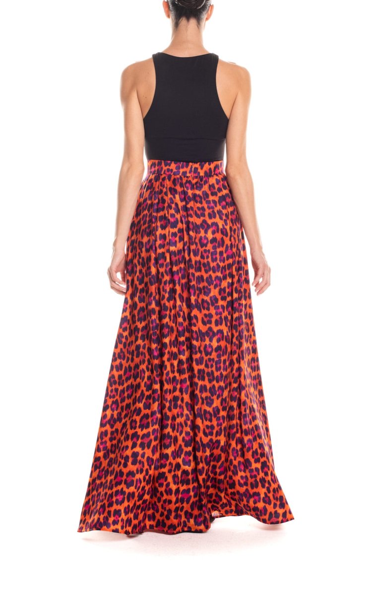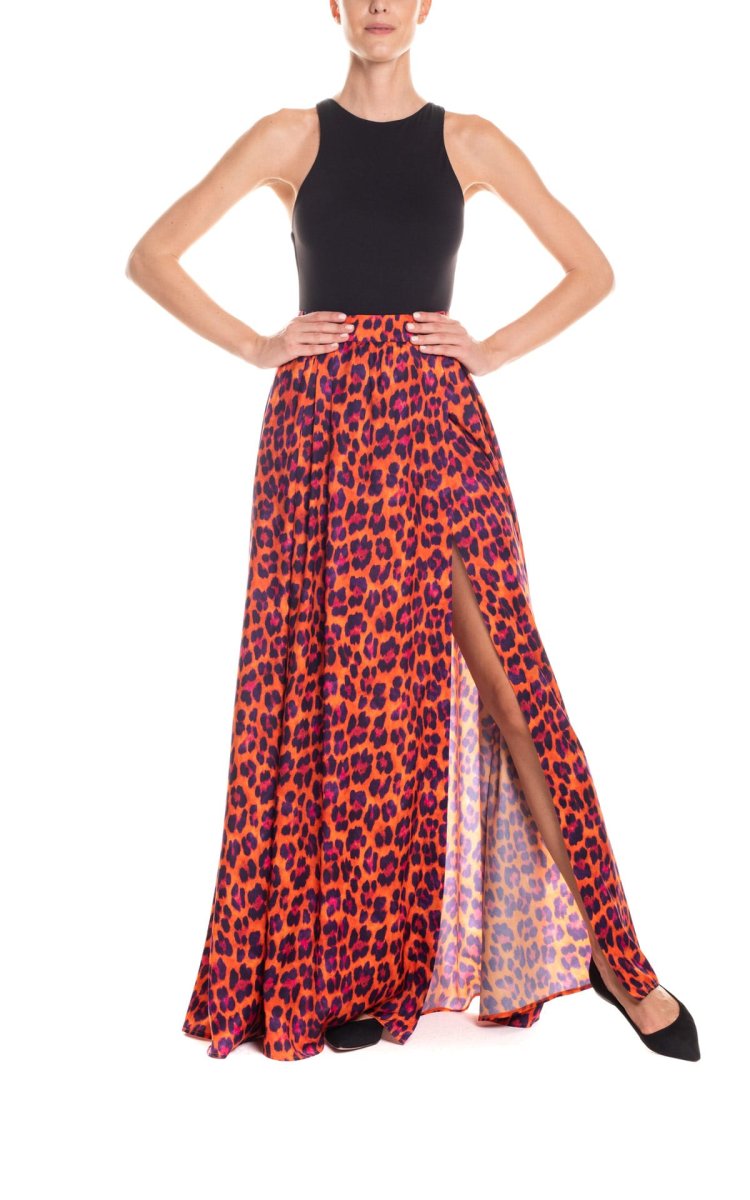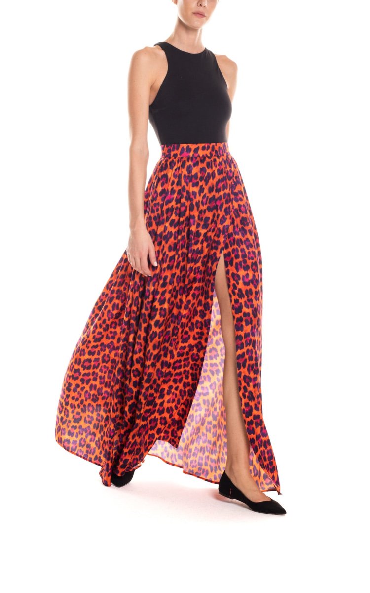 Gonna maxi ruota con spacco laterale animalier – arancio