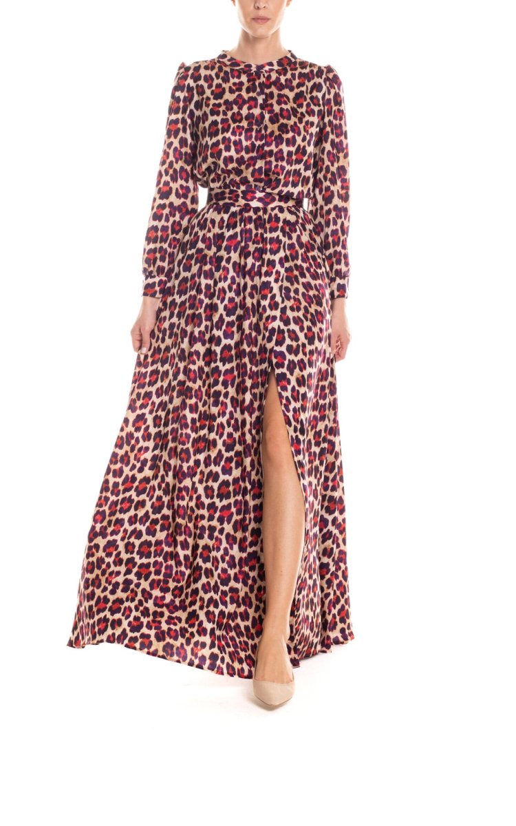 Gonna maxi ruota con spacco laterale animalier – crema e fucsia