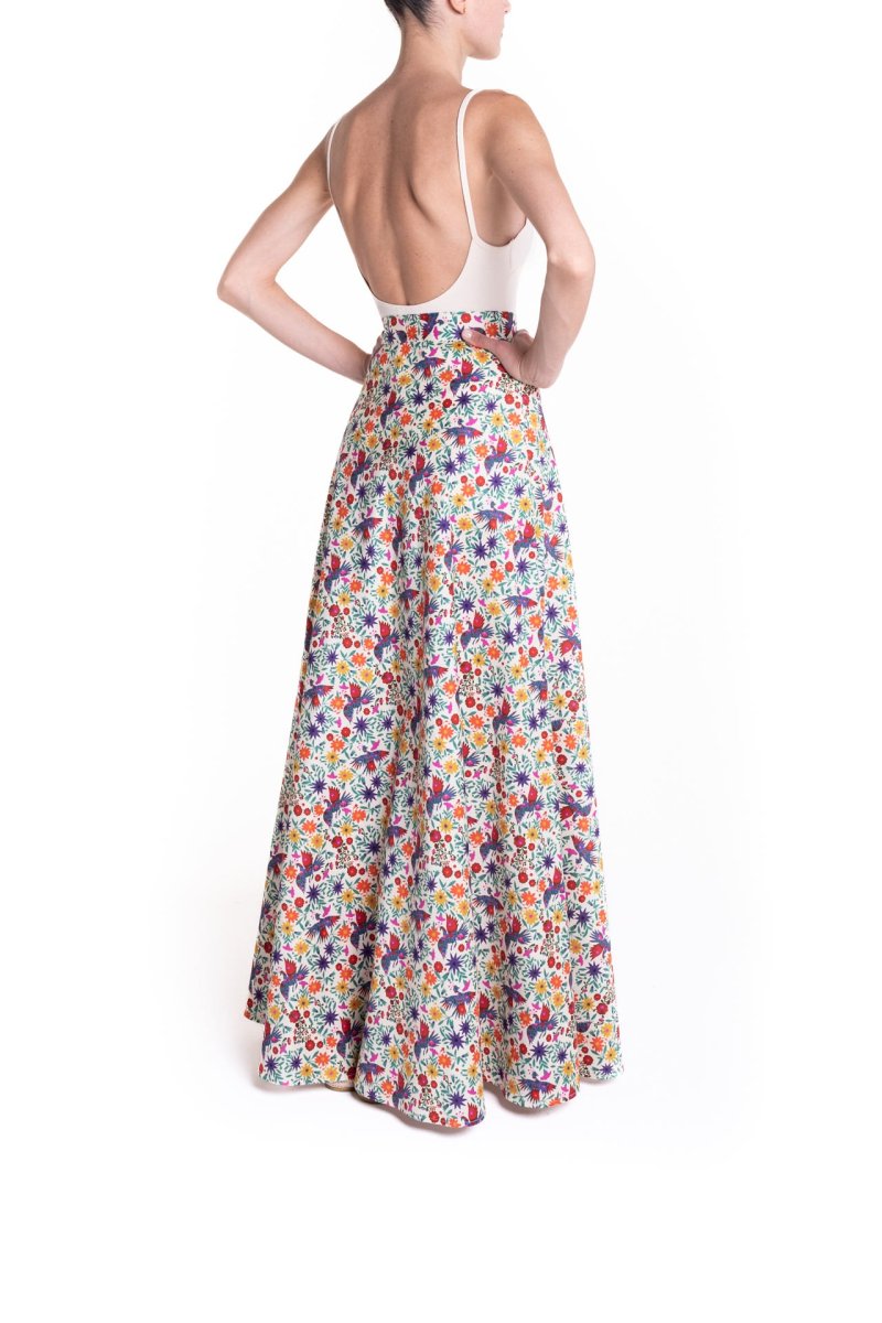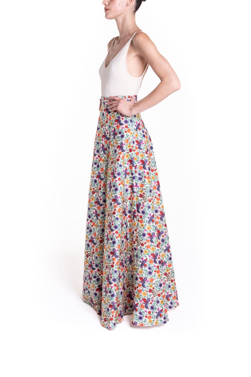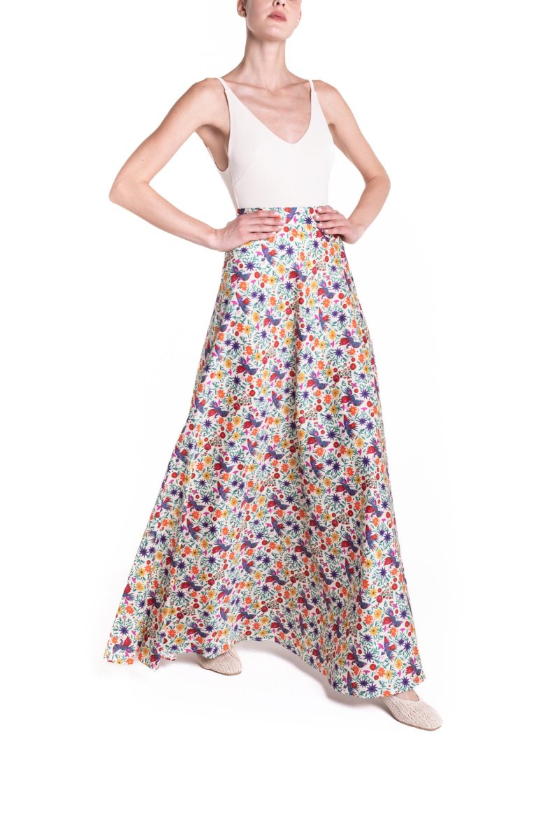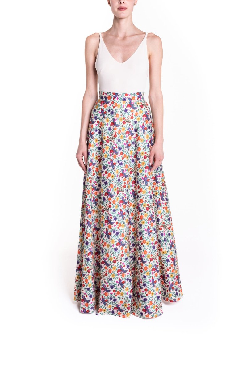 Gonna lunga a ruota in cotone leggero dona una nota vibrante alla Primavera Estate Poupine, con una nuova stampa viva, intrigante, bella, da amare e indossare per sempre.
