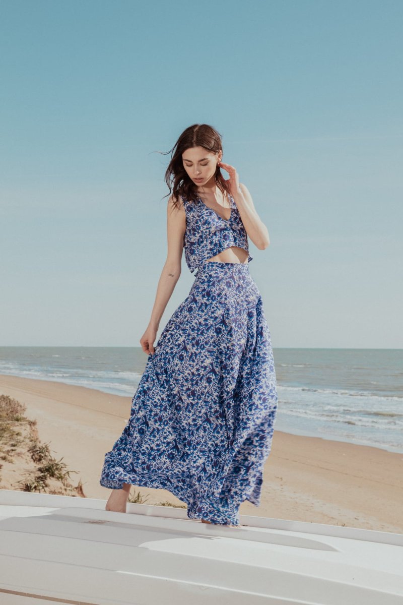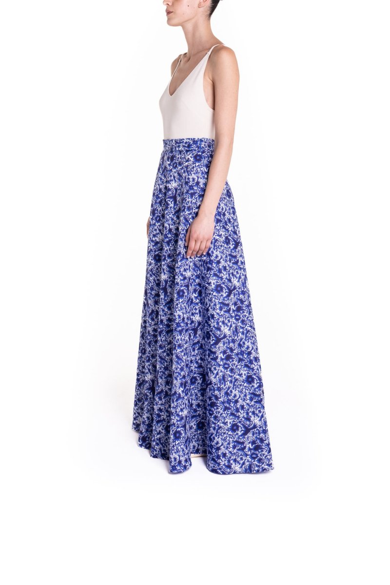 Gonna lunga a ruota in cotone leggero dona una nota vibrante alla Primavera Estate Poupine, con una nuova stampa viva, intrigante, bella, da amare e indossare per sempre.