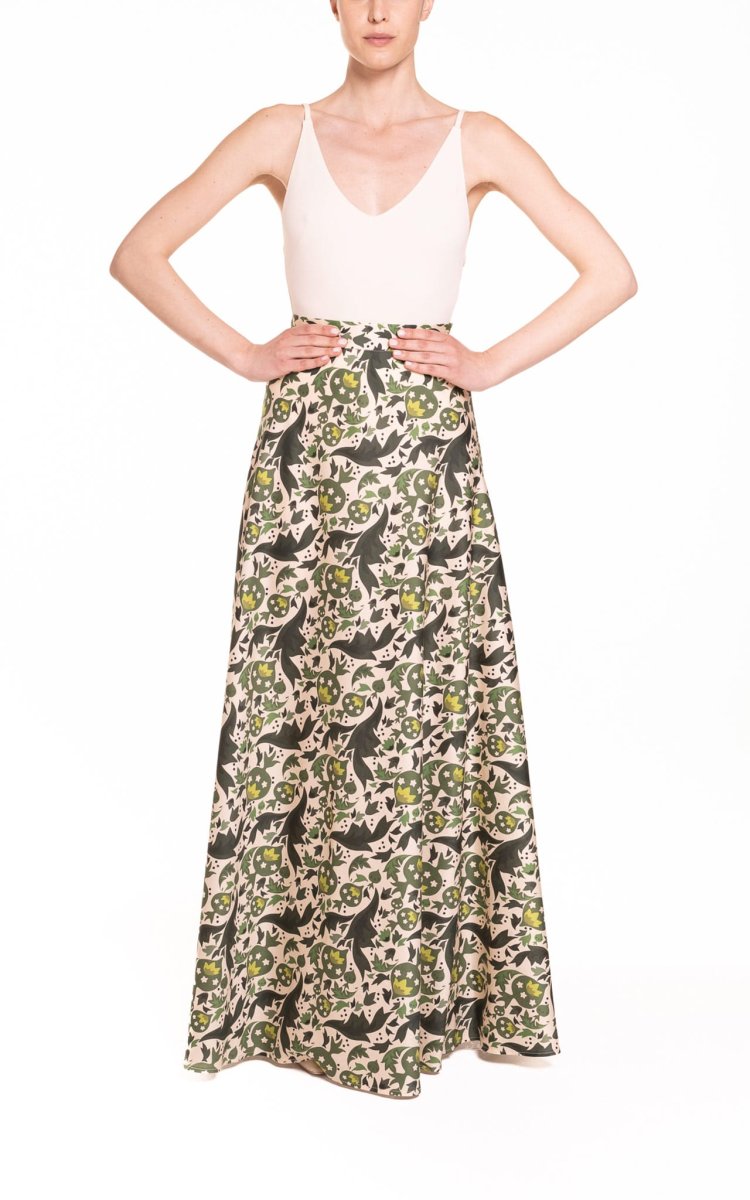 Gonna ruota classica fantasia verde con melograni