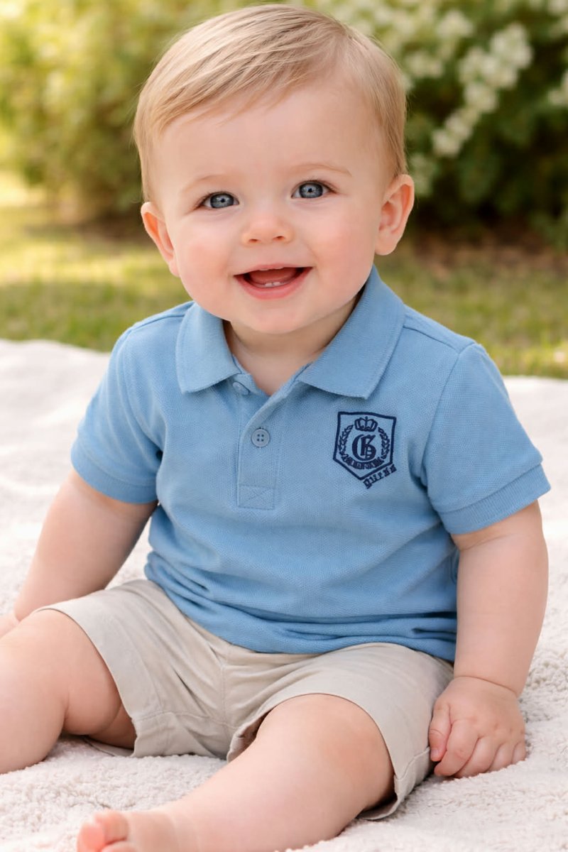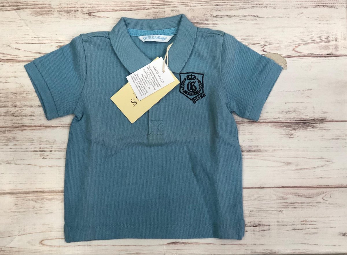 GUESS POLO GUESS POLO manica corta, chiusura con bottoncini. logo sul petto colore: azzurro taglia: dalla 3 mesi alla 24 mesi composizione: 100% cotone PIQUET