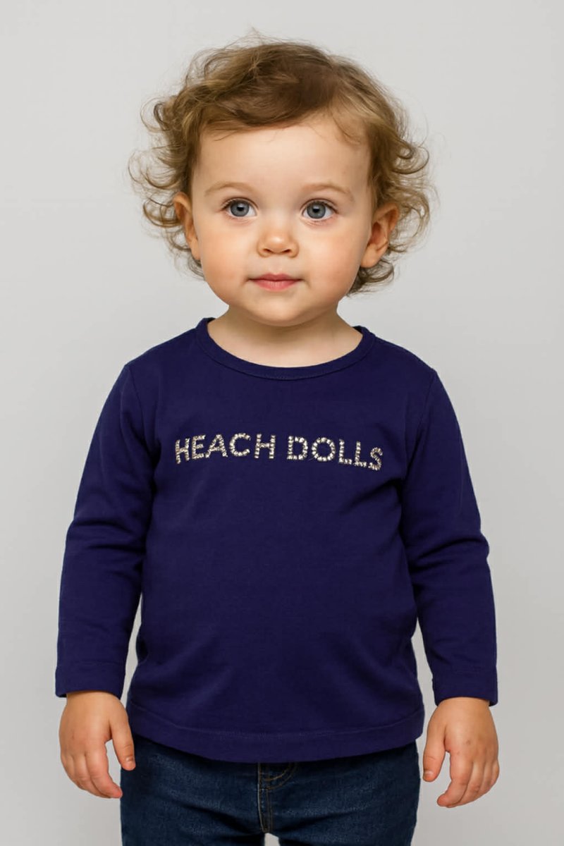HEACH DOLLSย T-SHIRTย NEONATA HEACH DOLLS T-SHIRTย NEONATA manica lunga e girocollo,ย logo in strass sul petto. Chiusura sul retro con bottoncini Taglia: 6-9 mesi, 12-18 mesi, 9-12 mesi colore:ย blu, arancione e bianco composizione: 100% cotone