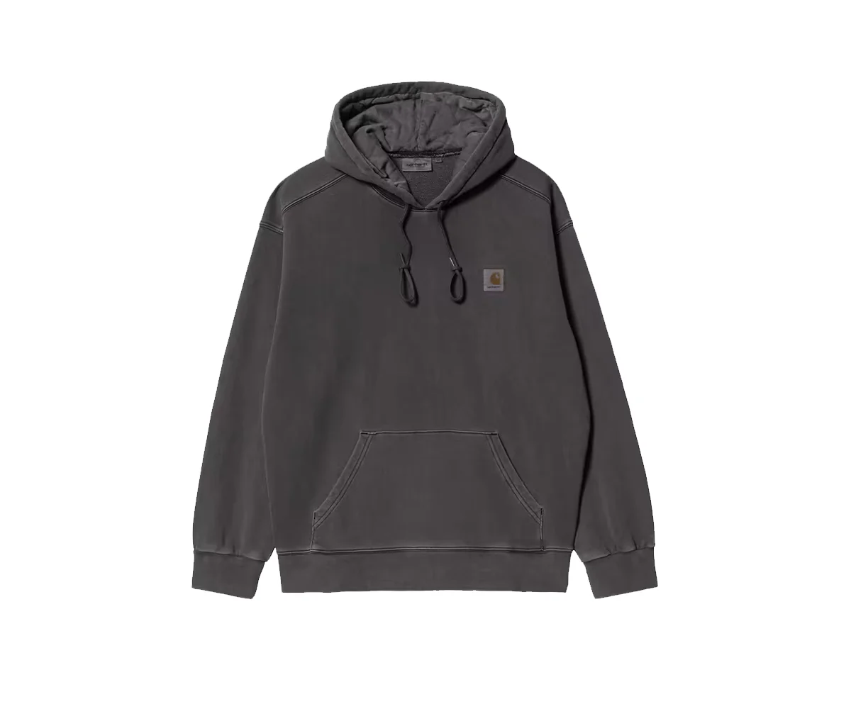 La Hooded Nelson Sweatshirt รจ realizzata in pesante jersey di cotone non spazzolato. La camicia รจ stata tinta in capo per un colore piรน intenso. ร dotata di tasca a marsupio e cappuccio trapuntato regolabile con imbottitura. Il vistoso taglio โa palloncinoโ la rende piรน ampia e comoda, ed รจ contraddistinta da spalle scese e polsini a coste. Rifinitura con la classica etichetta in tessuto Carhartt WIP sul lato sinistro del petto.
