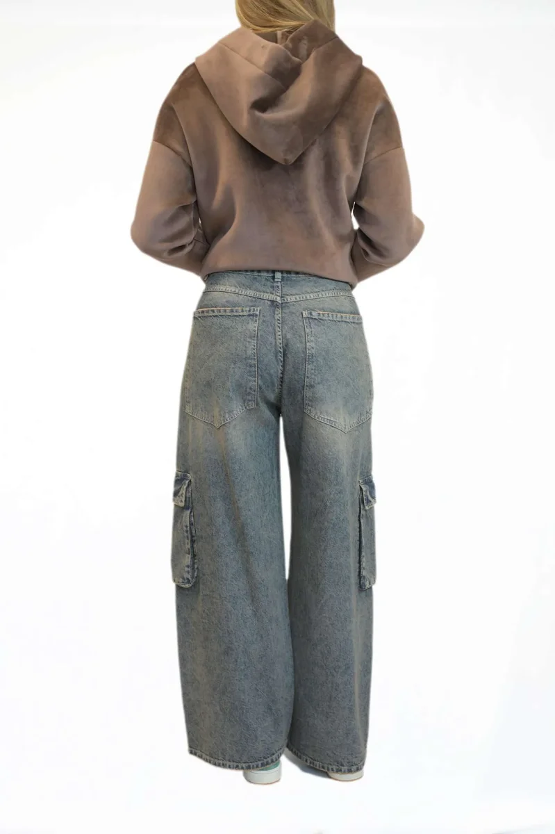 Jeans donna modello cargo con lavaggio particolare, dal carattere deciso e contemporaneo. Il design funzionale รจ arricchito da tasche applicate, mentre il lavaggio speciale dona al capo un effetto unico e di tendenza. La vestibilitร confortevole li rende ideali per un look casual urban, perfetti da indossare ogni giorno con stile e personalitร .