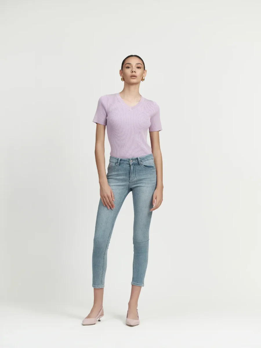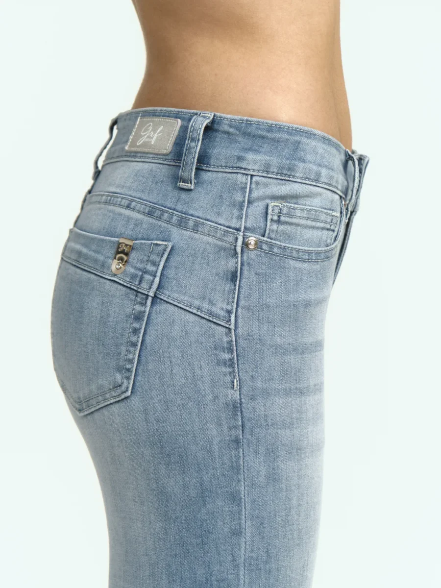 I jeans skinny a vita bassa con lavaggio chiaro del marchio Griffai rappresentano un capo versatile e alla moda, ideale per chi cerca uno stile contemporaneo e confortevole.