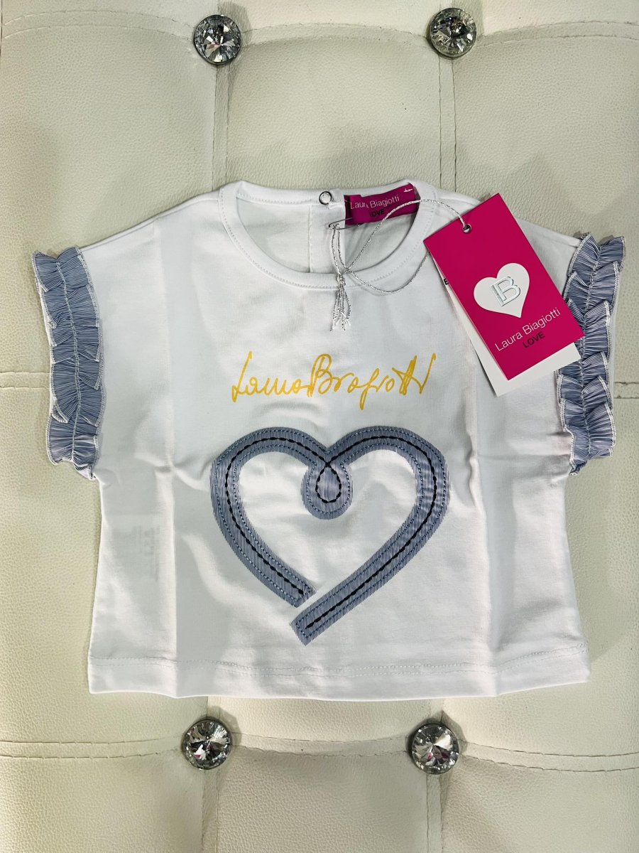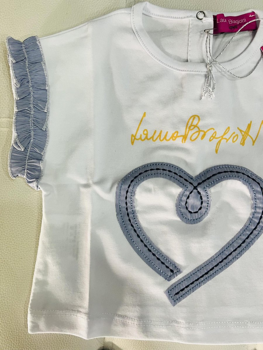 LAURA BIAGIOTTI T-SHIRT LAURA BIAGIOTTI T-SHIRT manica corta ad aletta e girocollo. grossa stampa centrale Colore: bianco composizione: cotone, elastico taglia: dalla 6 mesi alla 24 mesi