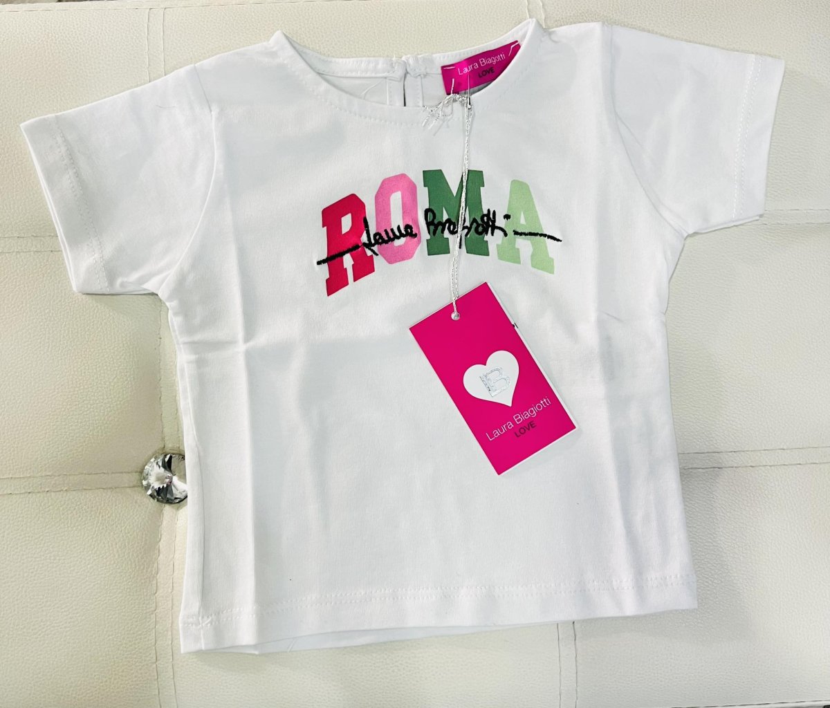 LAURA BIAGIOTTI T-SHIRT LAURA BIAGIOTTI T-SHIRT manica corta e girocollo. stampa centrale Colore: bianco composizione: cotone, elastico taglia: dalla 6 mesi alla 24 mesi