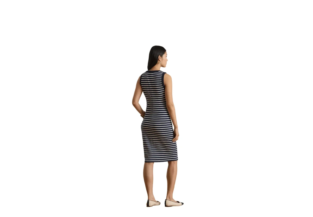 Silhouette a tubino. Girocollo. Cerniera centrale posteriore nascosta con chiusura a gancio.