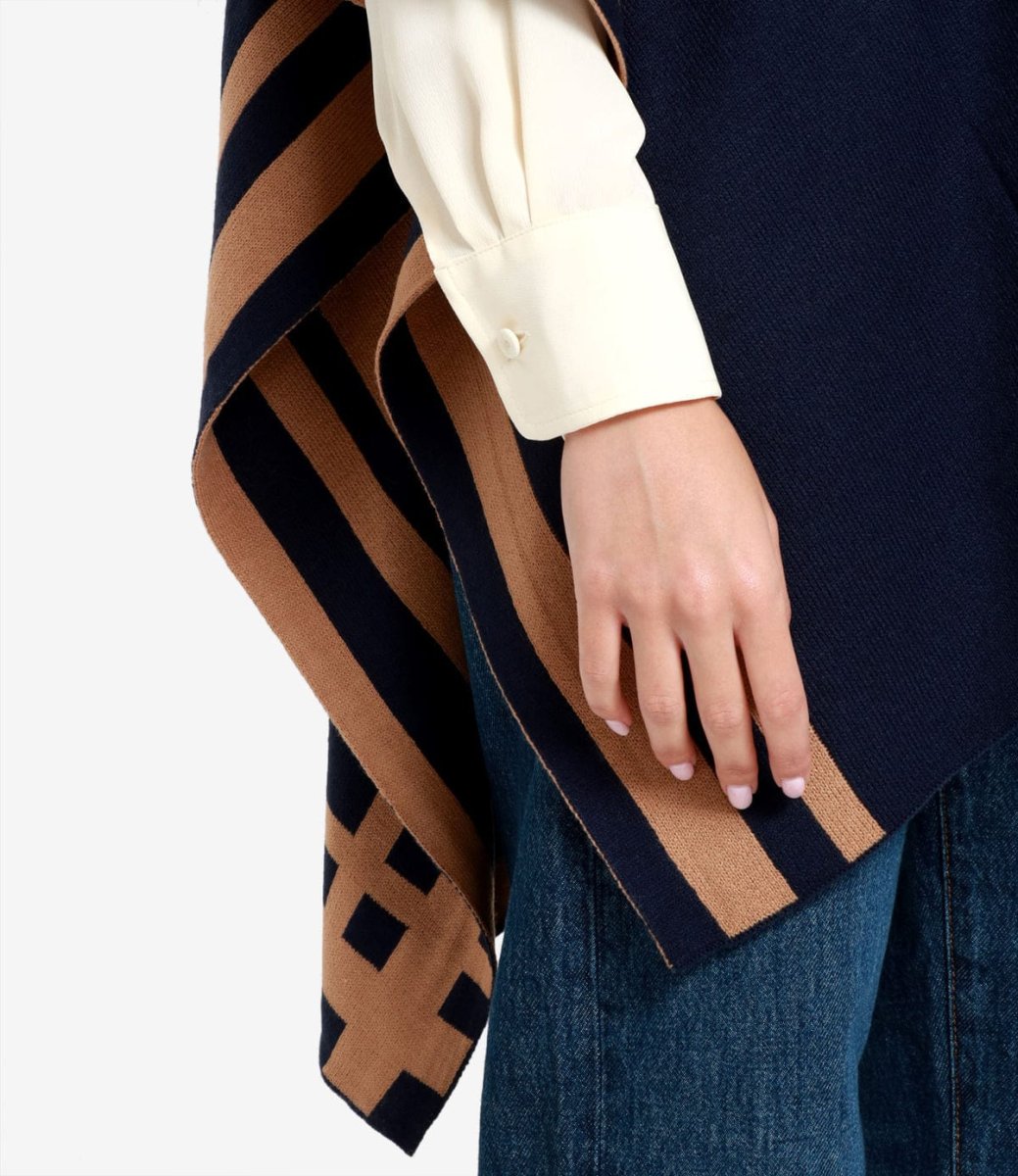 Modello: 454960145001 -Caldo tessuto– Motivo con lavorazione a maglia– Senza maniche– Chiusura sovrapposta – Rifiniture a contrasto– Reversibile