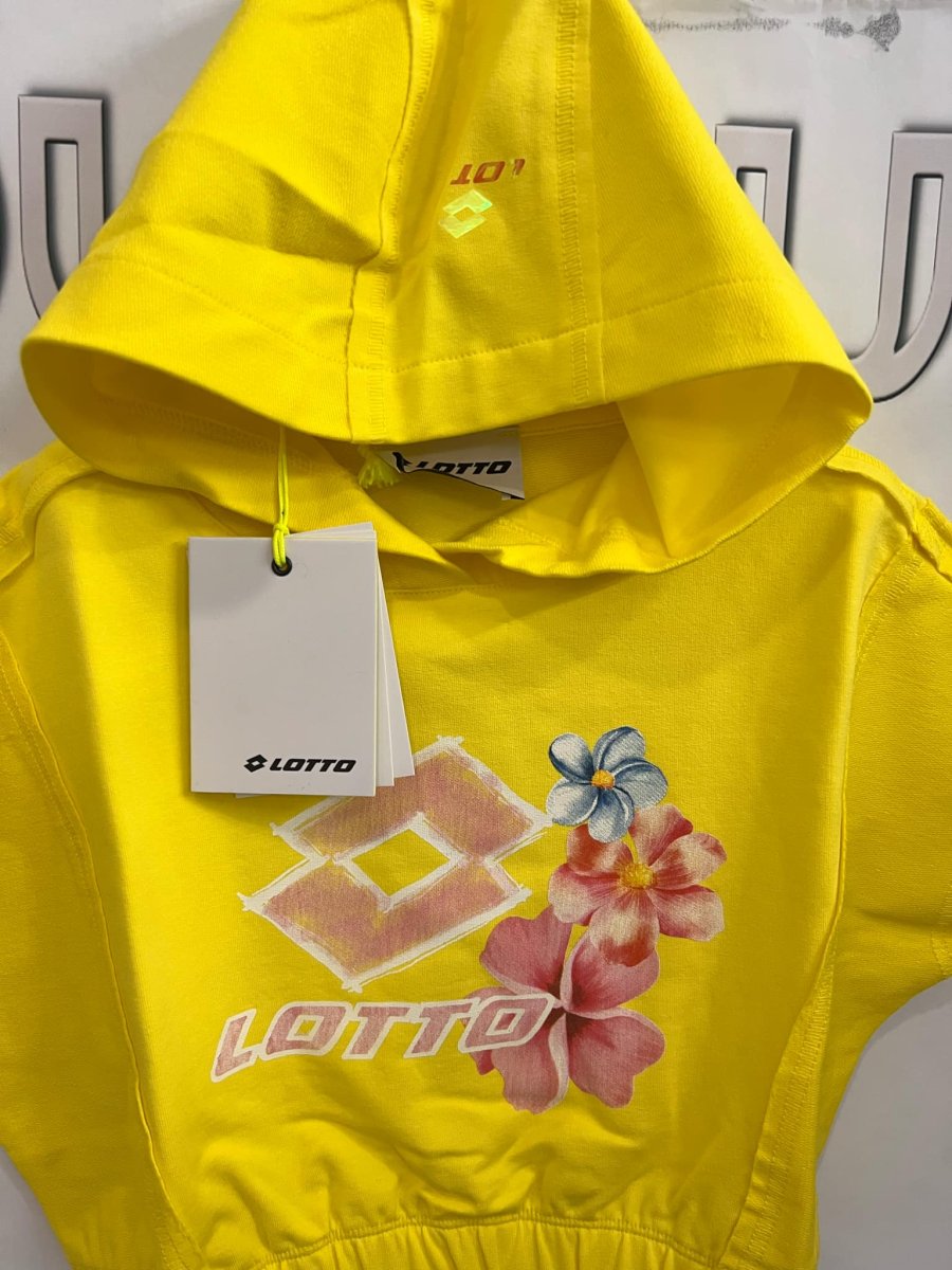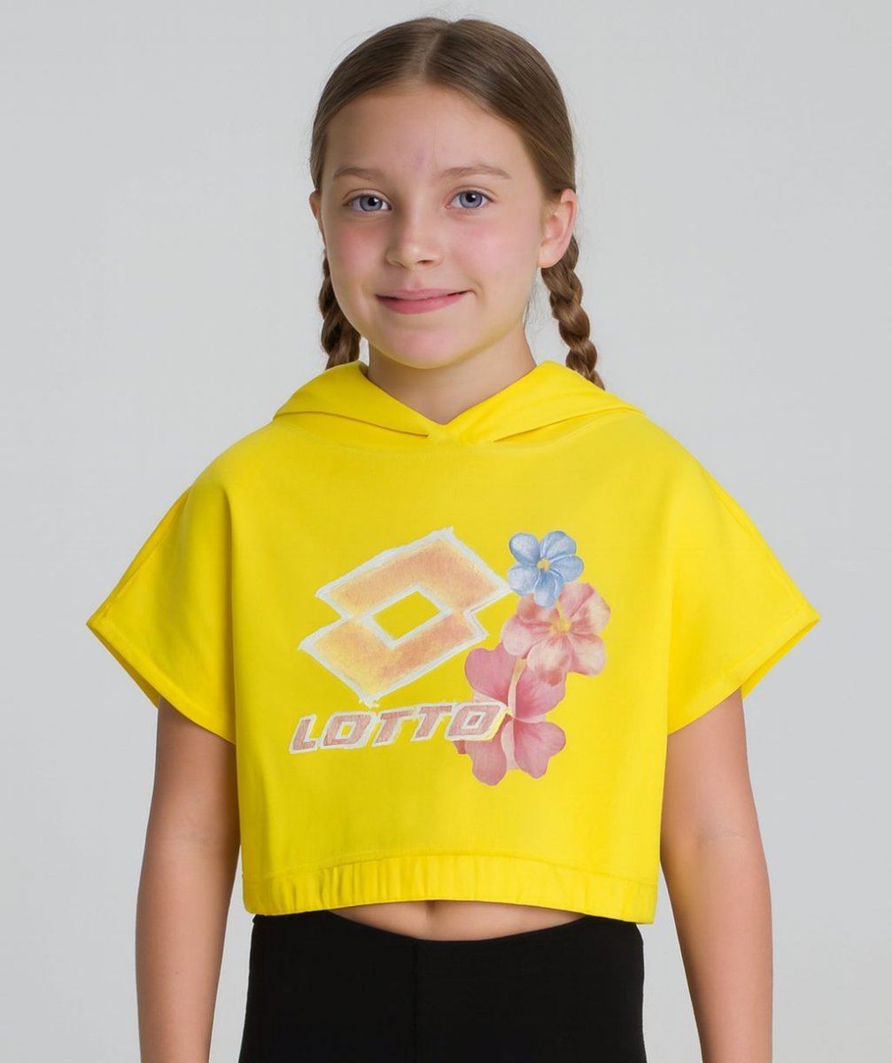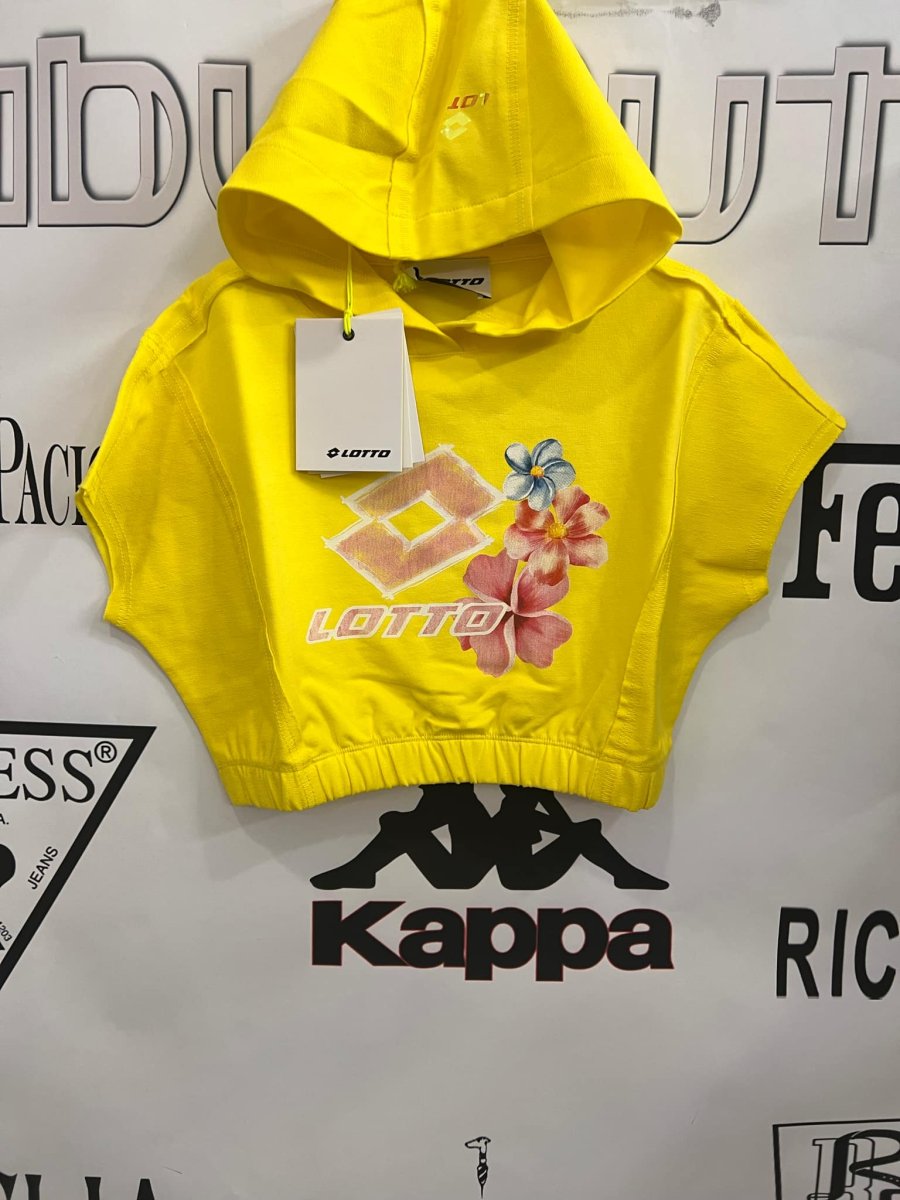 LOTTO FELPA LOTTO FELPA con cappuccio. logo. cropped con elastico in vita. mezza manica taglia: 4 anni alla 18 anni Composizione: cotone Colore: giallo