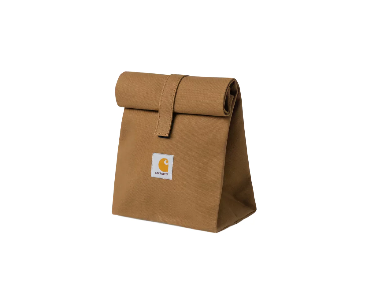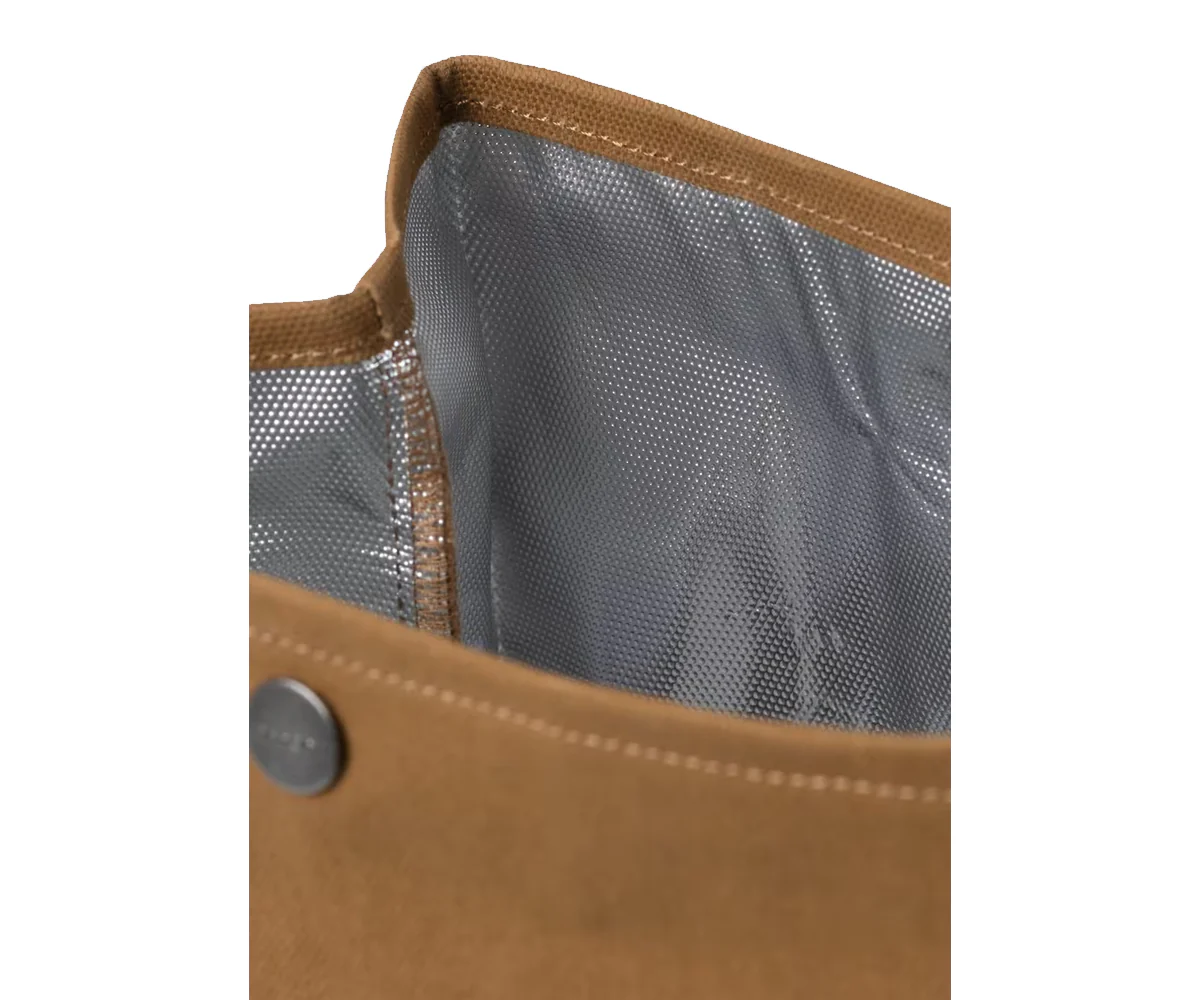 La Lunch Bag รจ realizzata nella pesante tela di cotone Dearborn con rivestimento isolante. Allโesterno il portapranzo presenta una finitura cerata. Rifinisce il modello unโetichetta quadrata in tessuto.