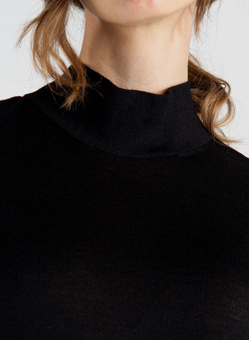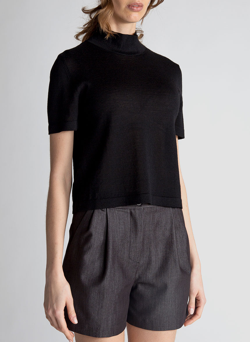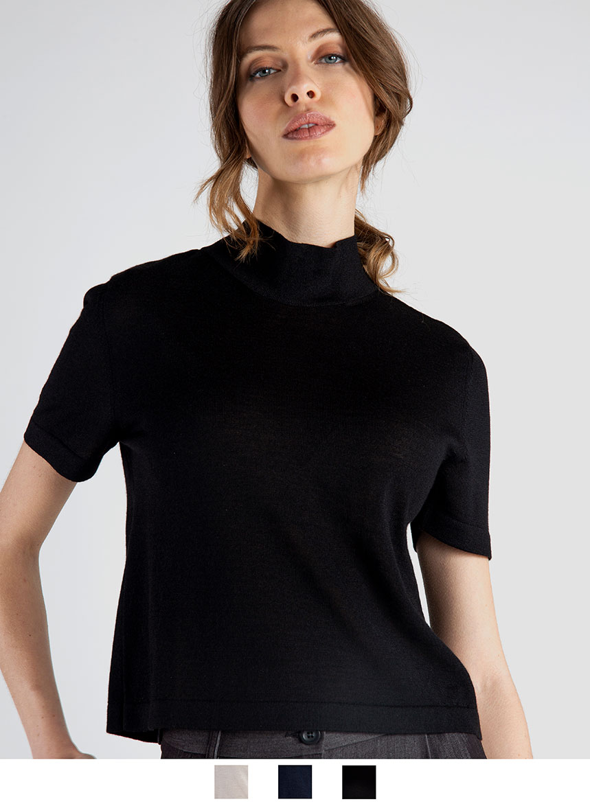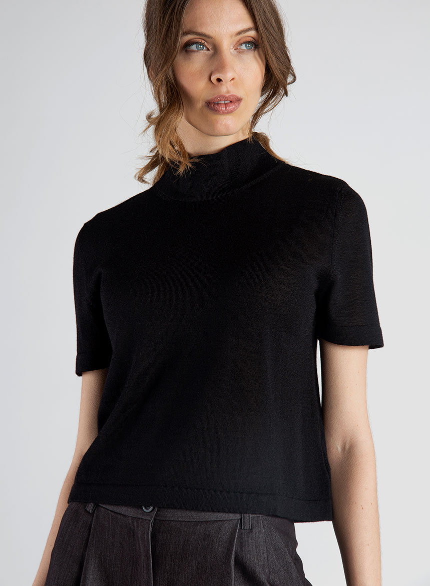 Maglia collo a Lupetto, mezza manica, Lana, Seta e Cashmere – Nero