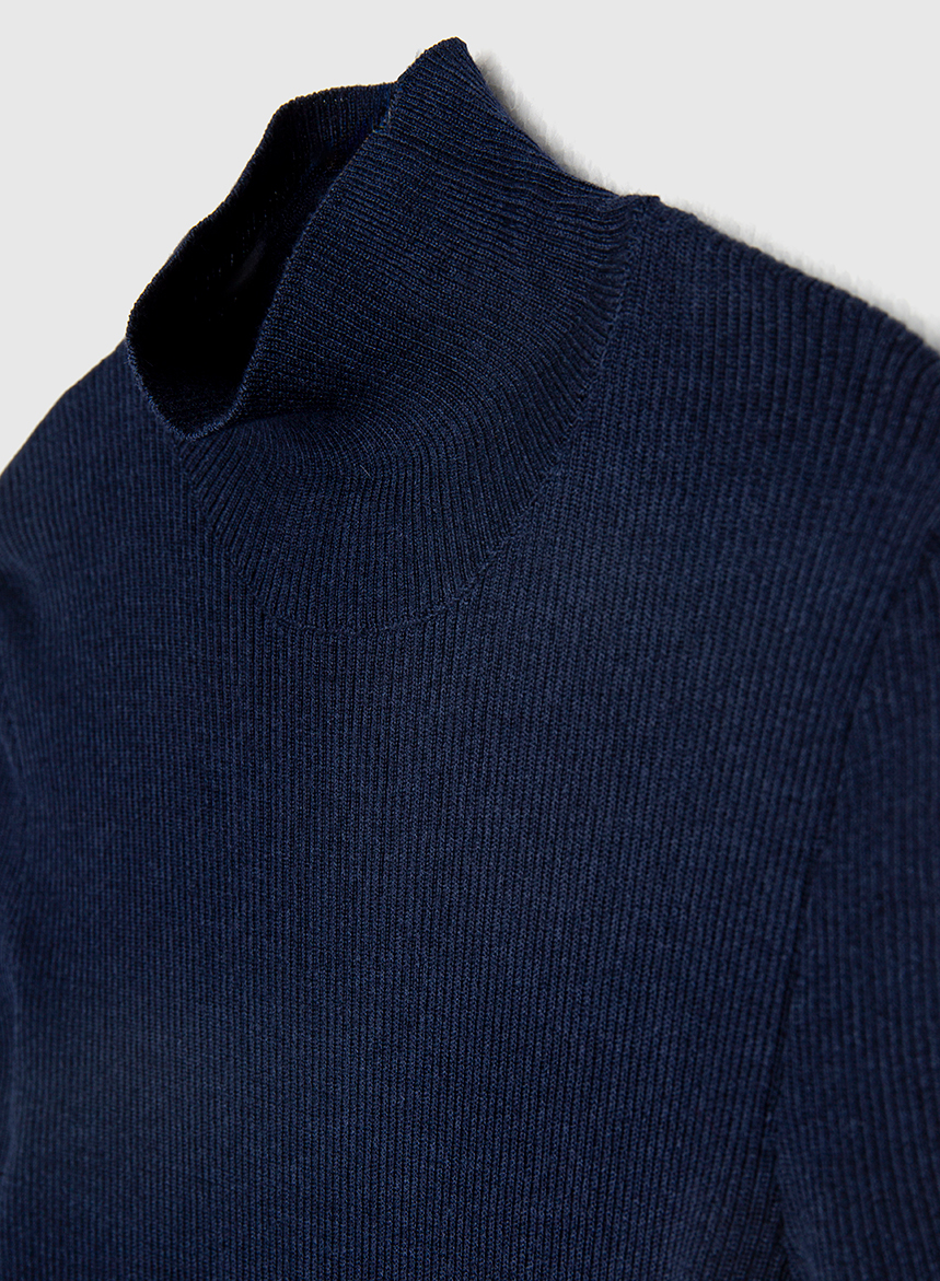 Maglia Collo Lupetto Coste Lana, Seta e Cashmere – Blu