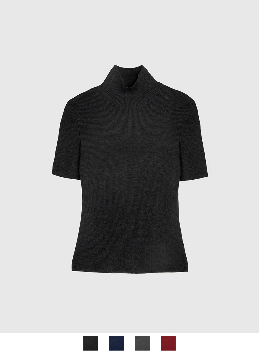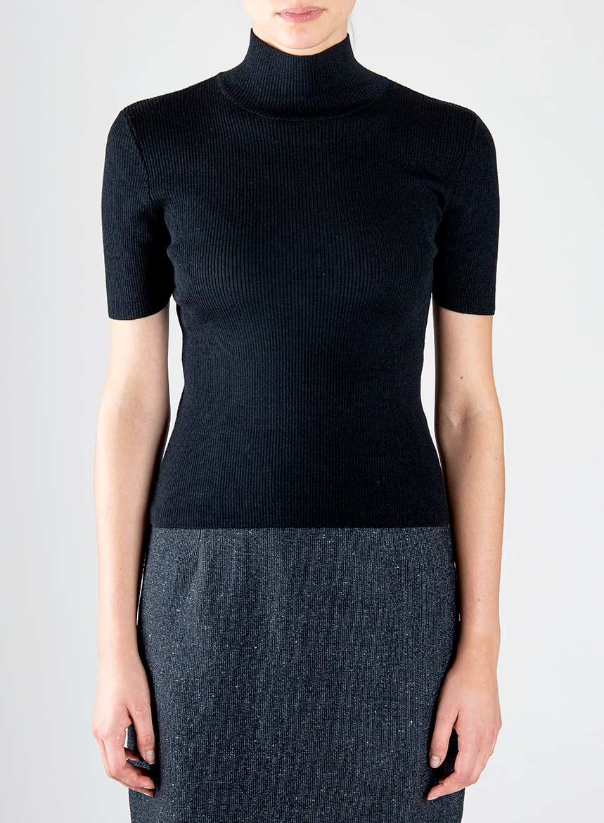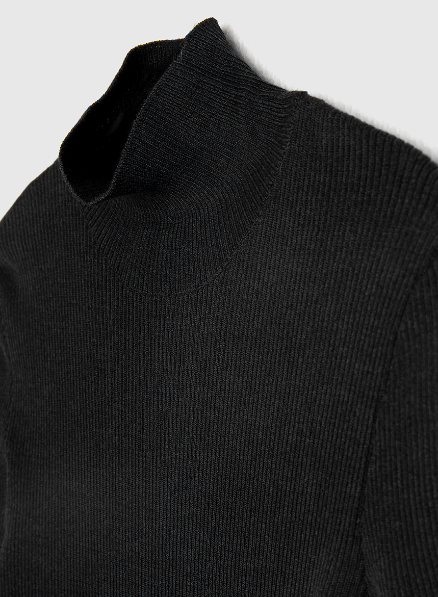 Maglia Collo Lupetto Coste Lana, Seta e Cashmere – Nero