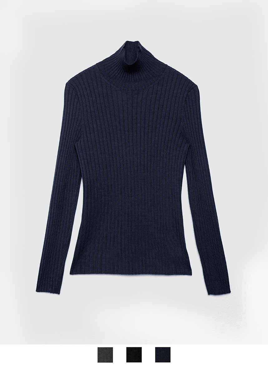 Maglia Dolcevita Coste in Responsible Wool – Blu