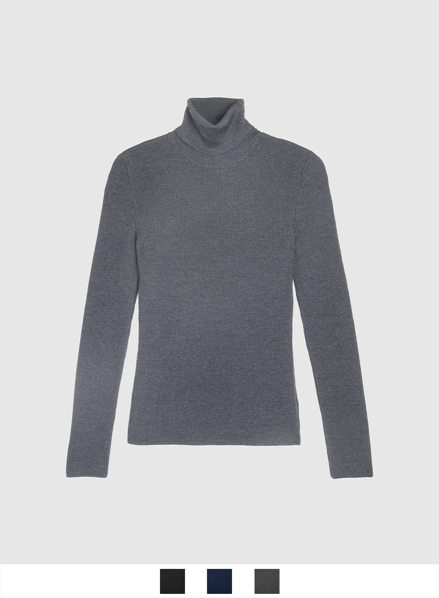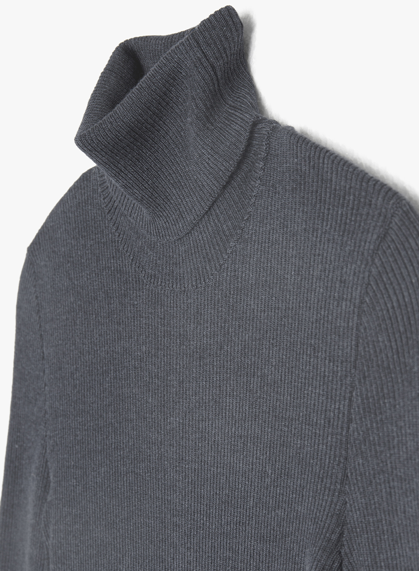 Maglia Dolcevita Coste Lana, Seta e Cashmere – Grigio