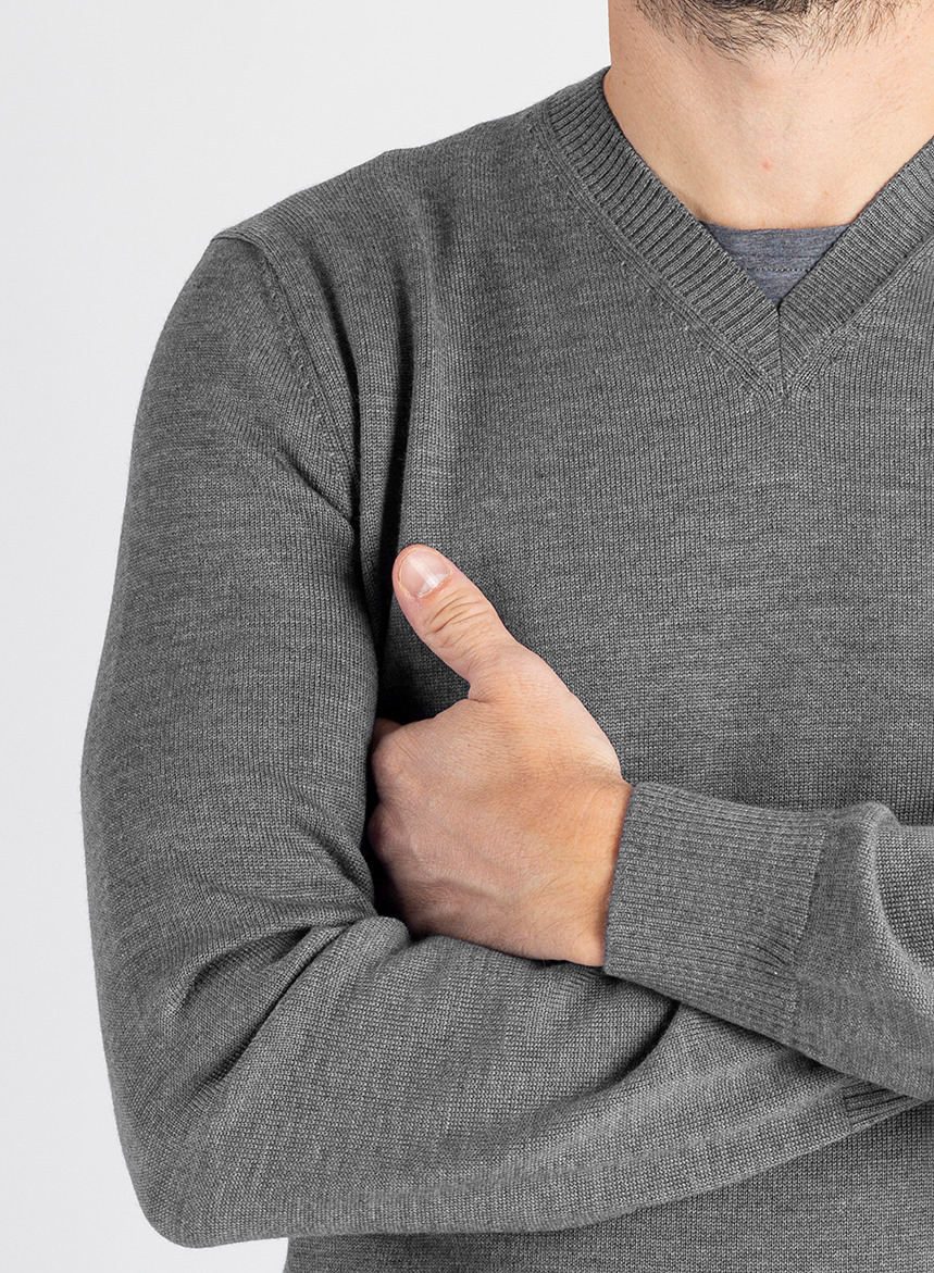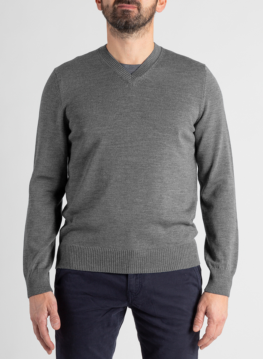 Maglione Uomo scollo V Lana Merinos – Grigio