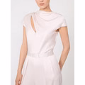 Tuta smanicata con pantalone ampio e corpetto drappeggiato con dettaglio cut-out obliquo sul davanti.