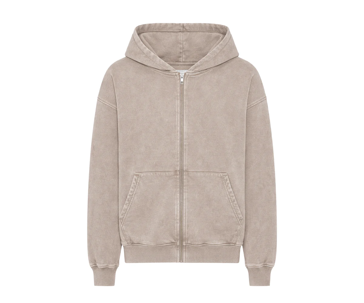 Organic Oversized Zip Hoodie – Faded Khaki