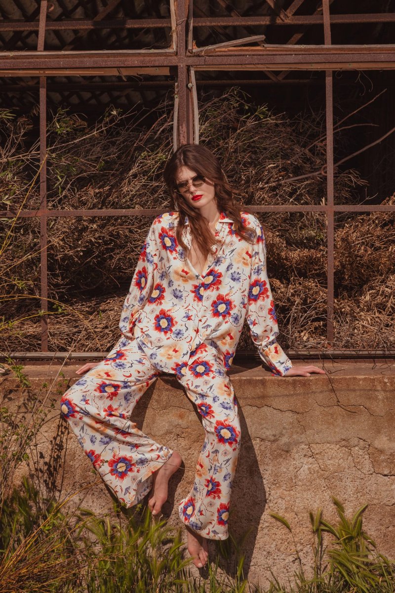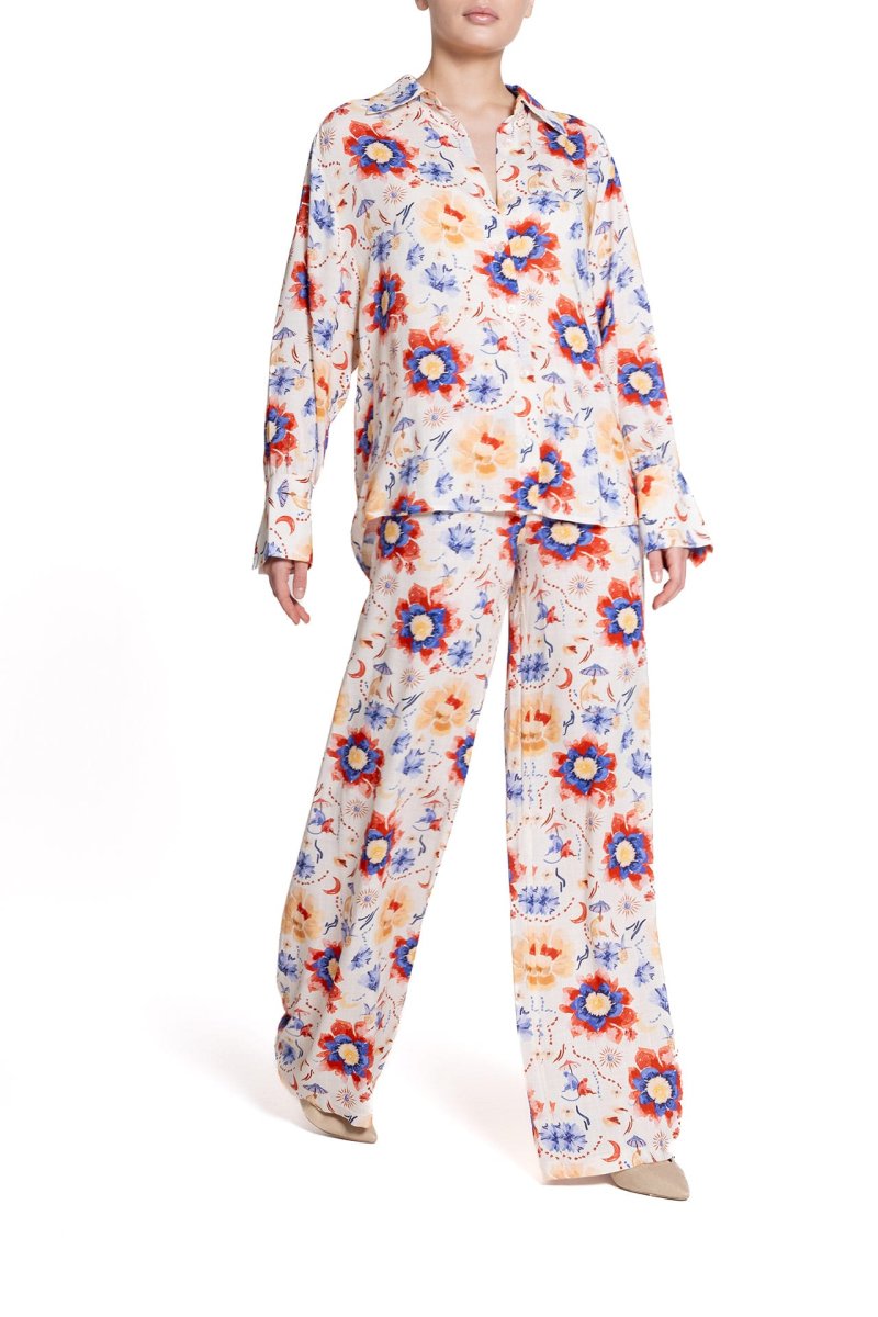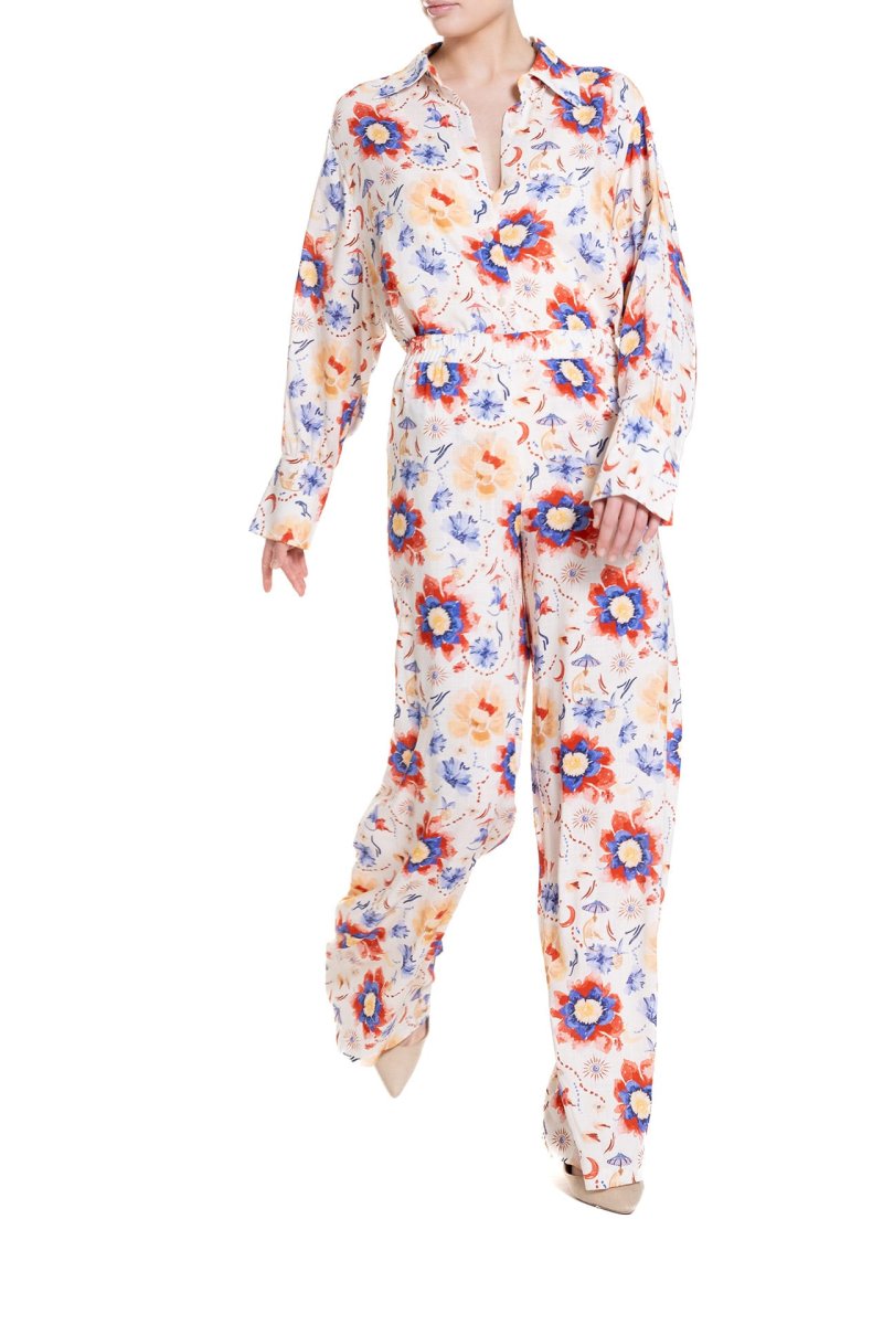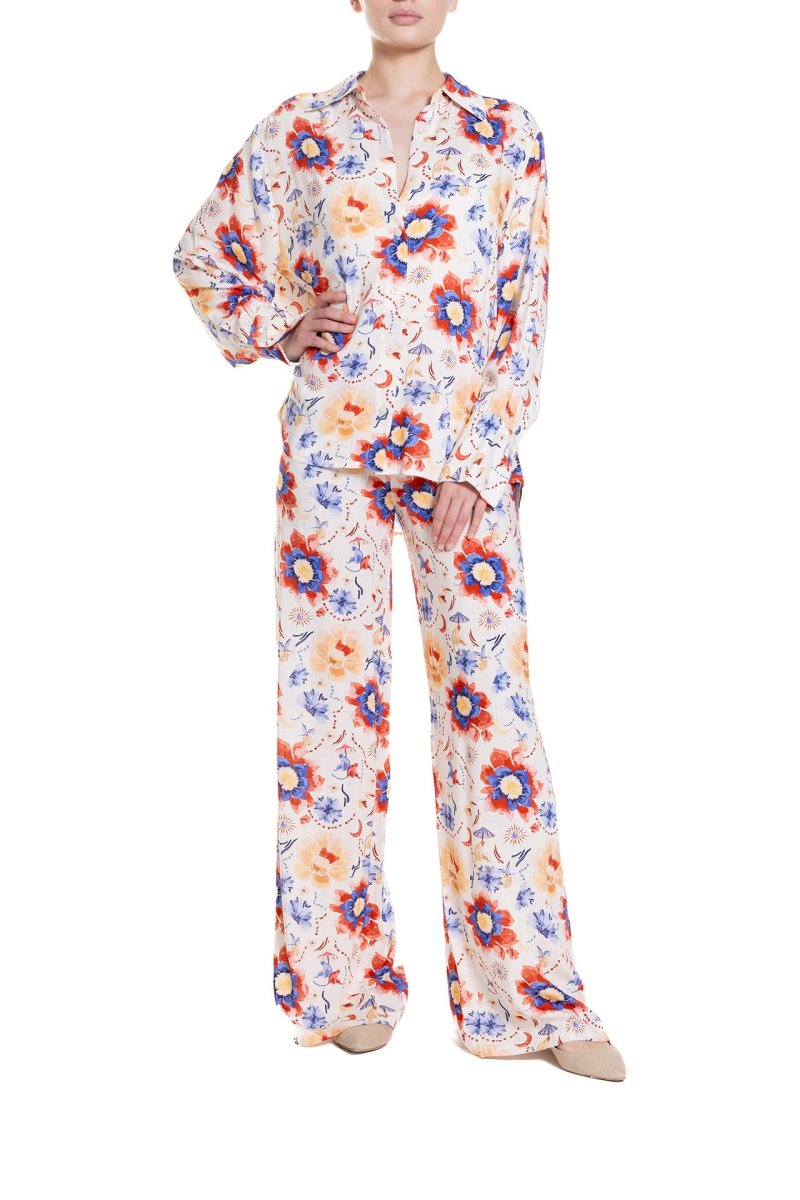 Pantalone a palazzo Fantasia Fiore Blu