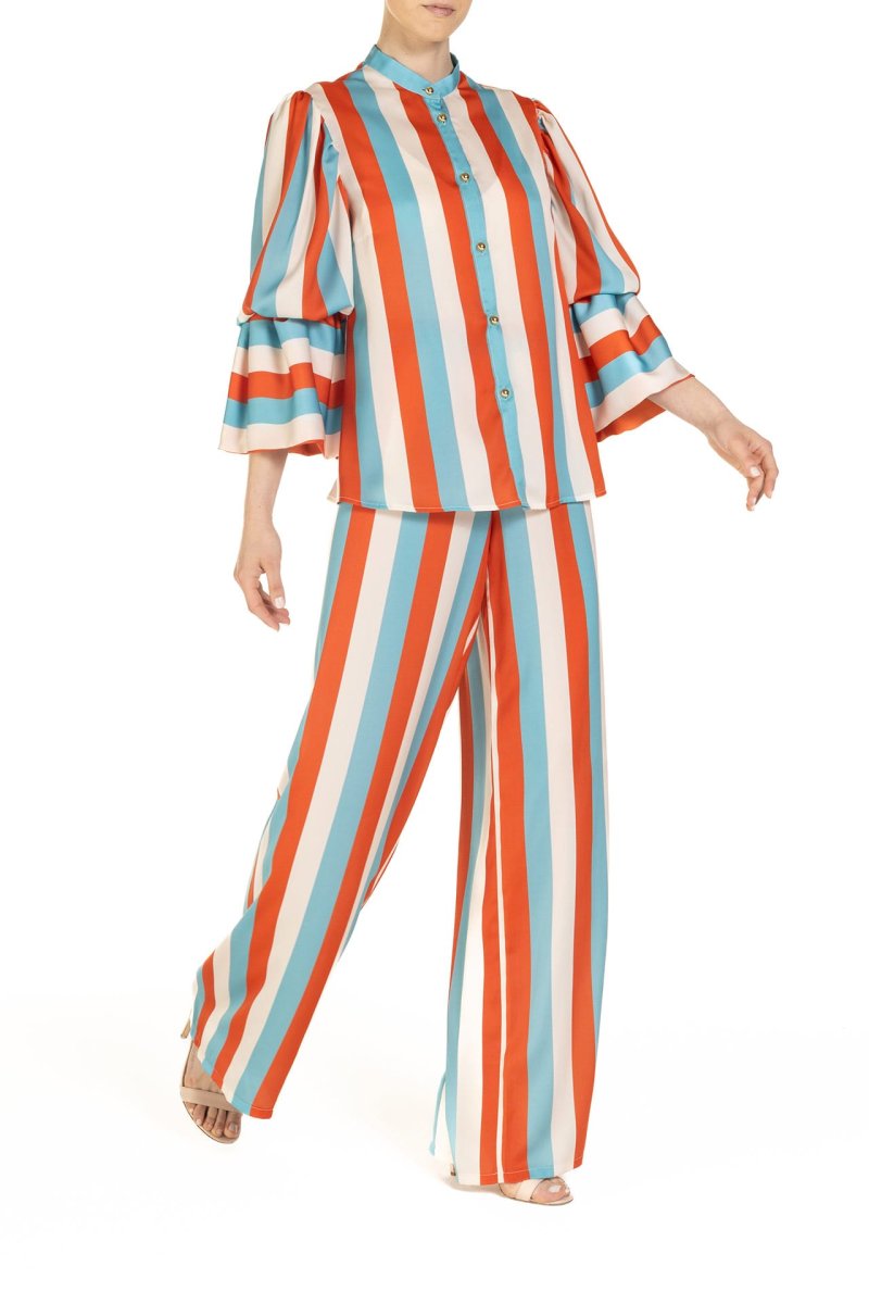 Pantalone Riga Celeste Arancio e Panna
