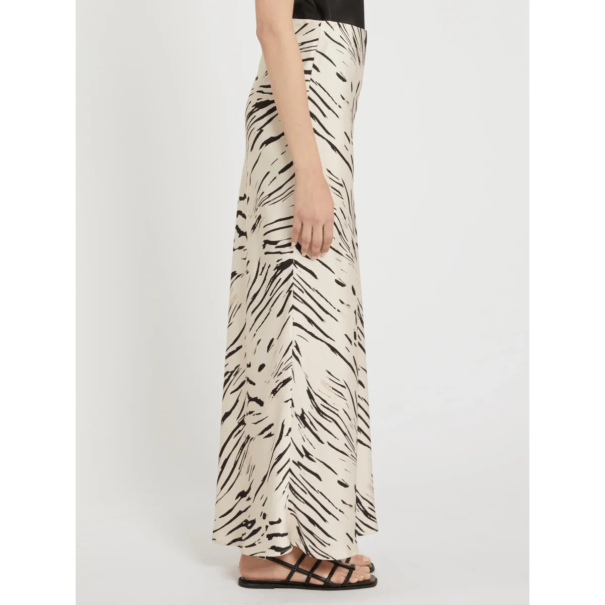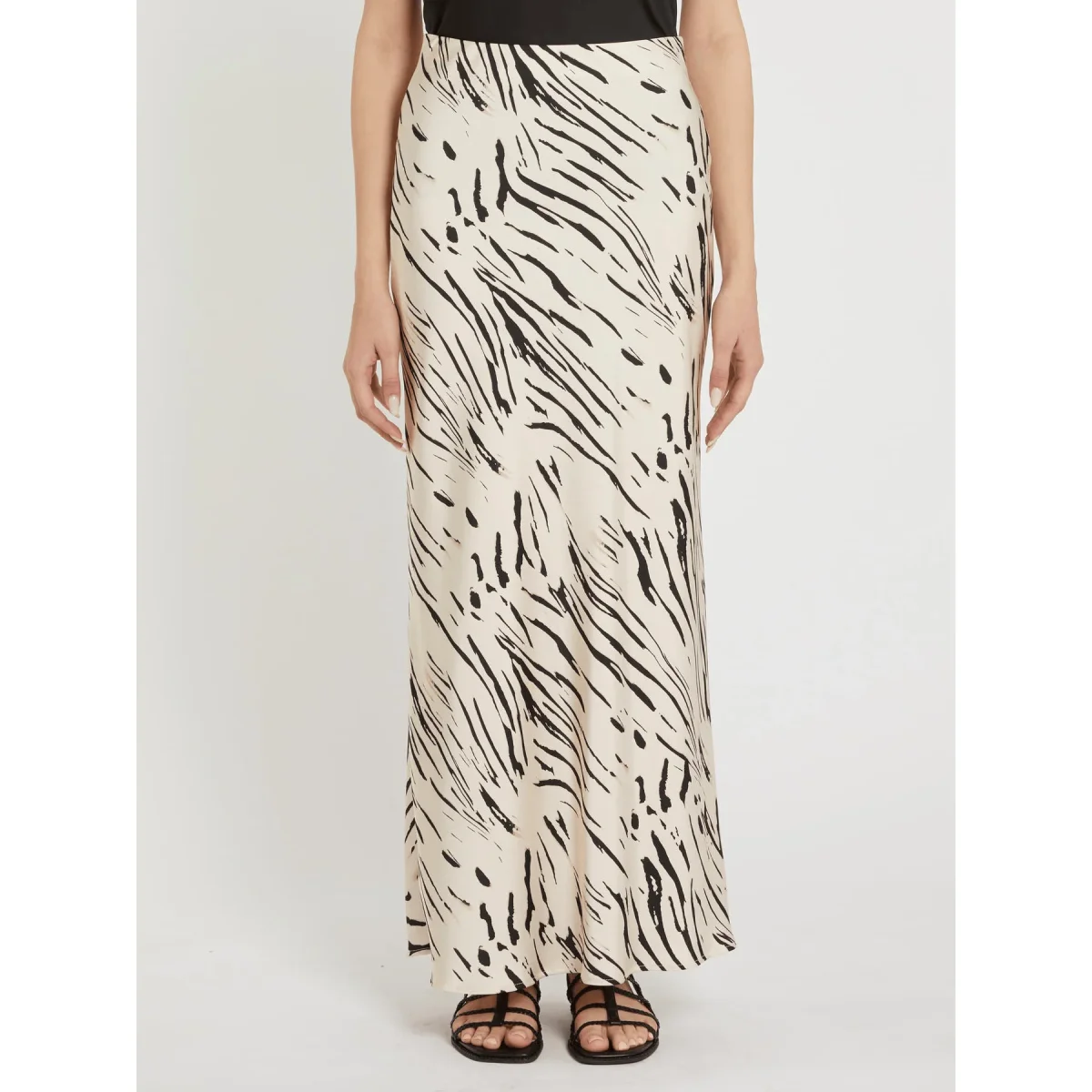 Tagliata per sfiorare la silhouette con linee fluide, questa gonna in doppio raso sarร perfetta con top e blazer per le occasioni speciali, ma anche con una semplice T-shirt per quelle piรน informali.