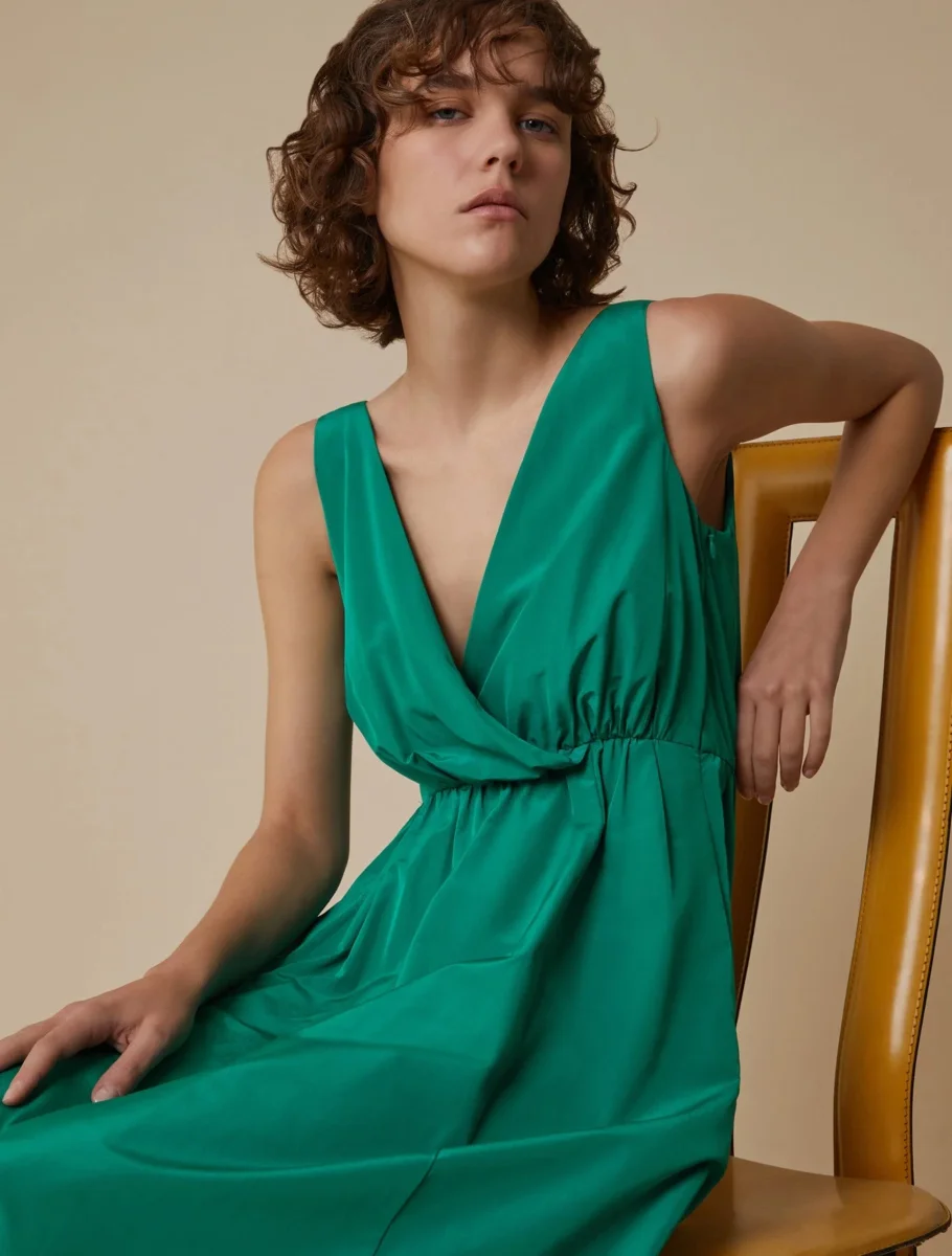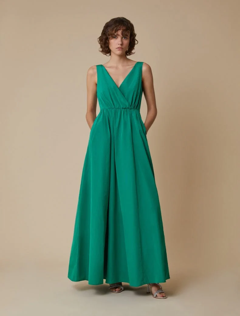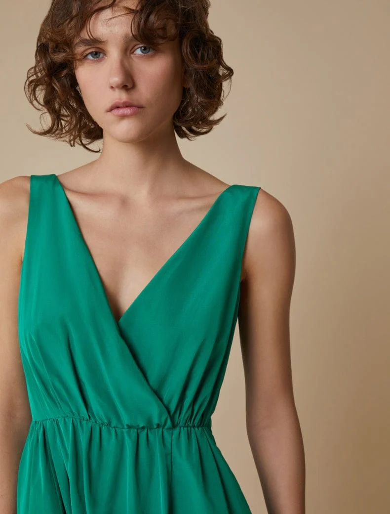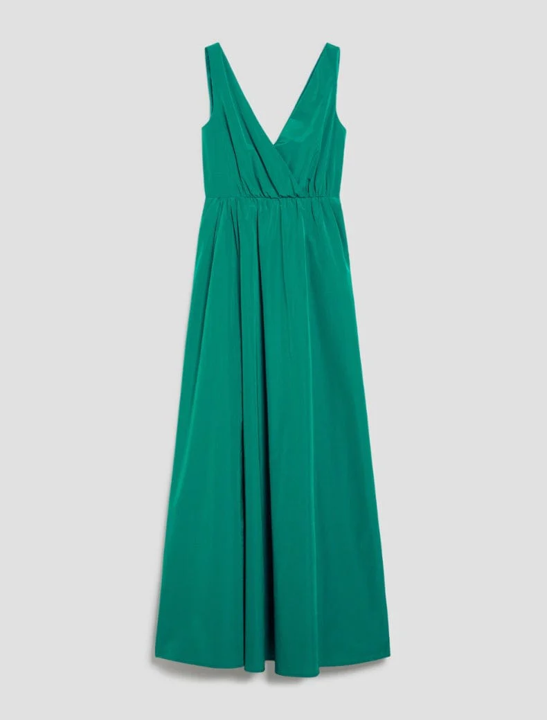 Taffettà in blend di cotone. Top di taglio slim con scollo incrociato davanti e dietro. Vita delineata con arricciatura. Gonna svasata. Tasche inserite e zip invisibile al fianco.