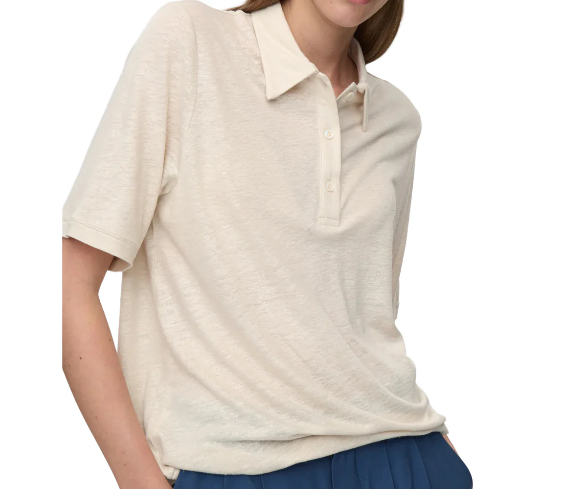 Codice prodotto: 246904159-0701 Descrizione: Questa polo รจ realizzata in un lussuoso tessuto misto di lino e viscosa. Con abbottonatura e colletto classico, questa polo a maniche corte รจ la scelta perfetta sia per outfit casual che piรน preppy.