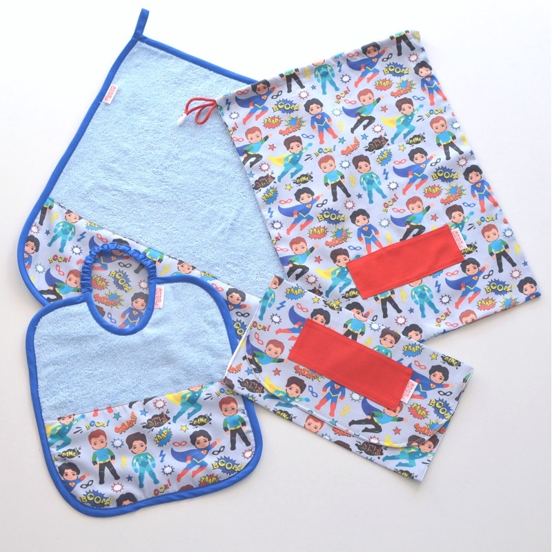 Portabavaglino ย inย tessuto fantasia 100% cotone. Dimensioniย 18x30cm.