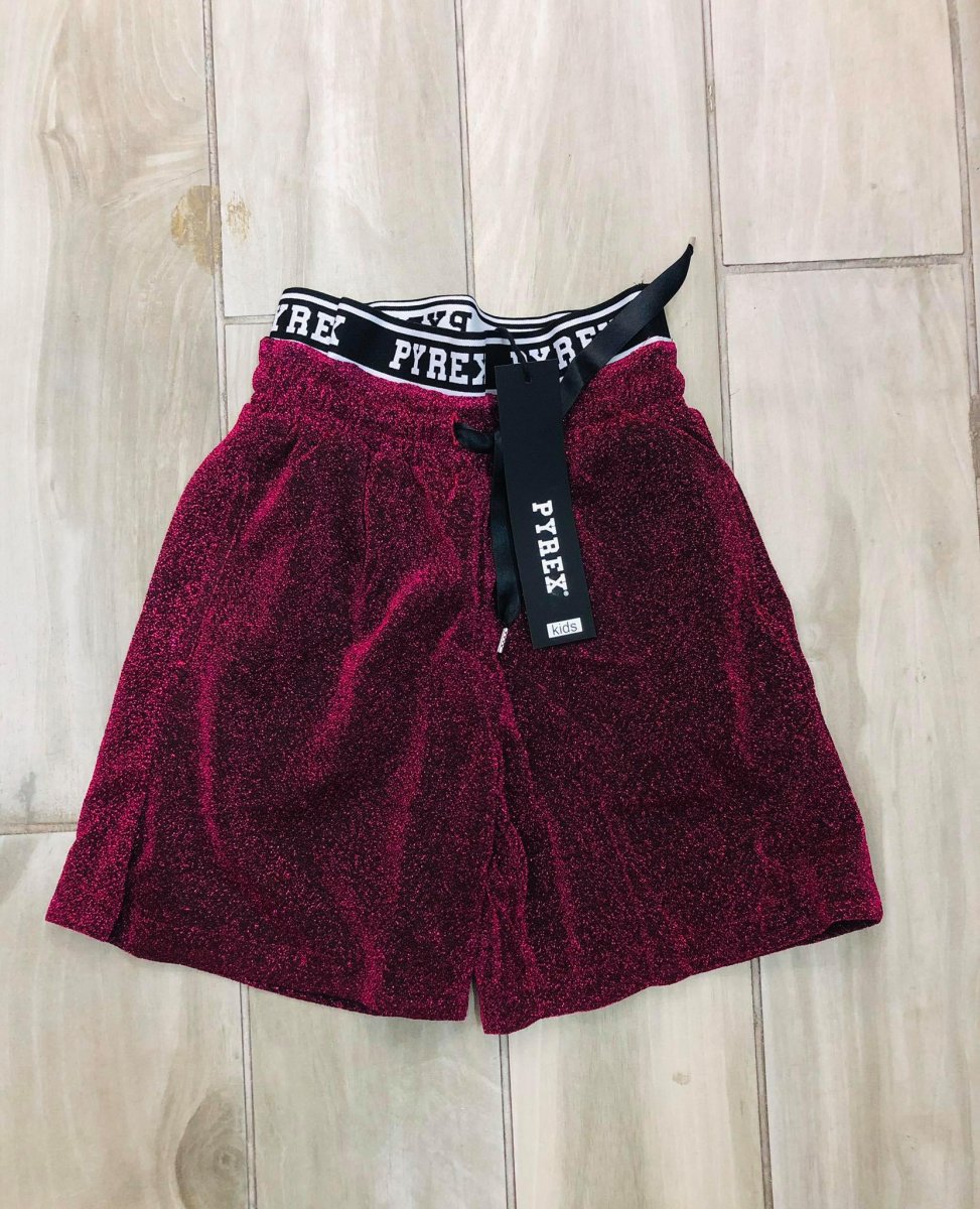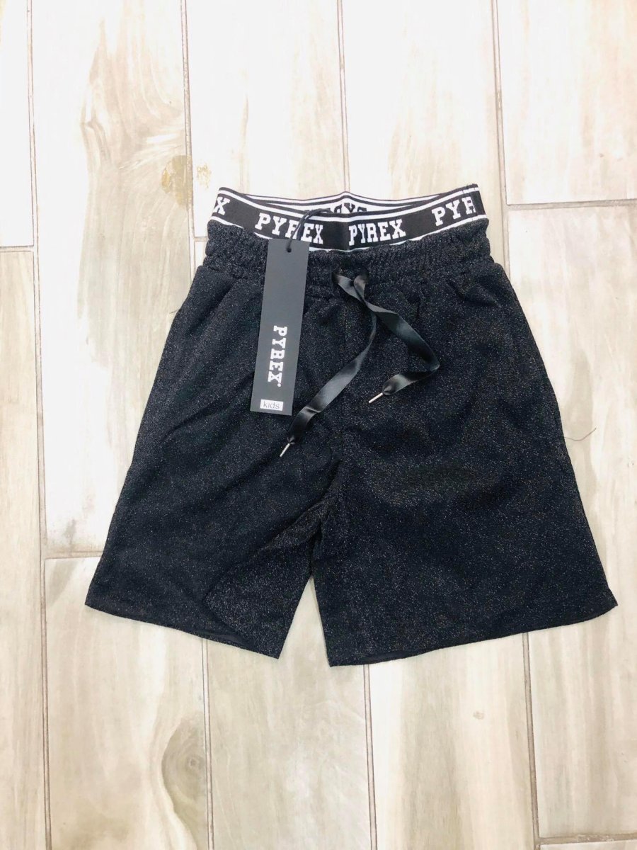 PYREX BERMUDA PYREX BERMUDA corto, elastico in vita in logo, laccio. interamente in lurex colore: nero o prugna taglia dalla xs (6 anni) alla xxl (16 anni) composizione: 100% poliestere