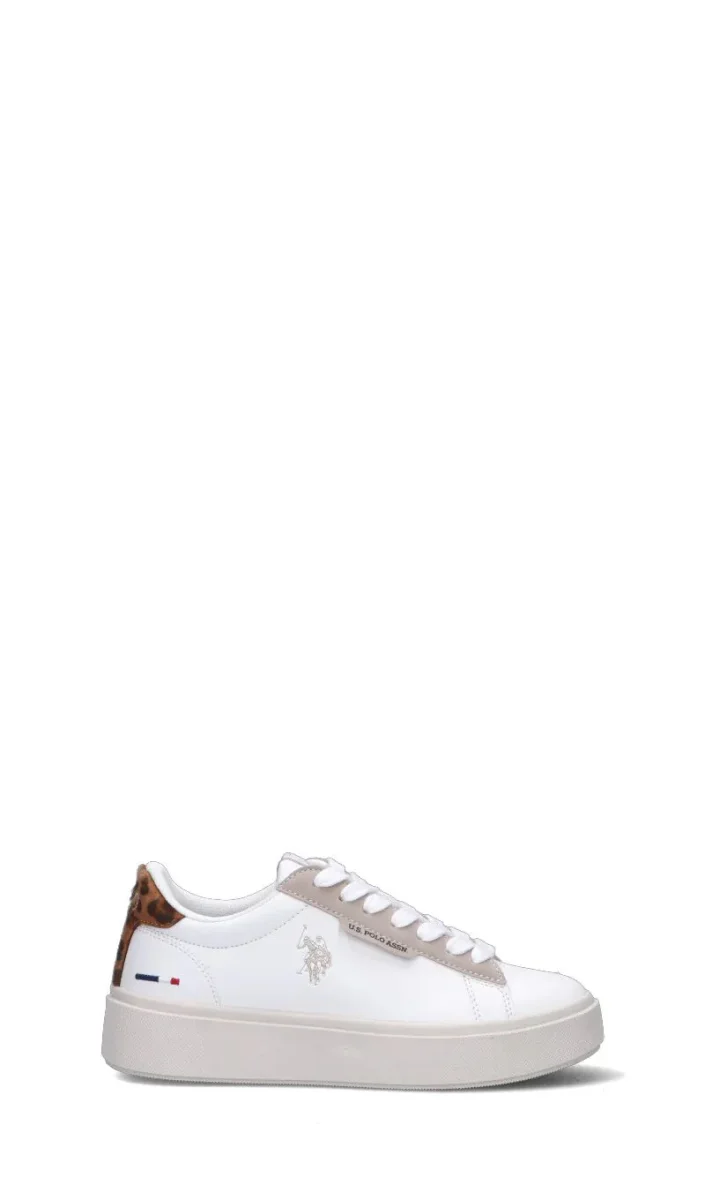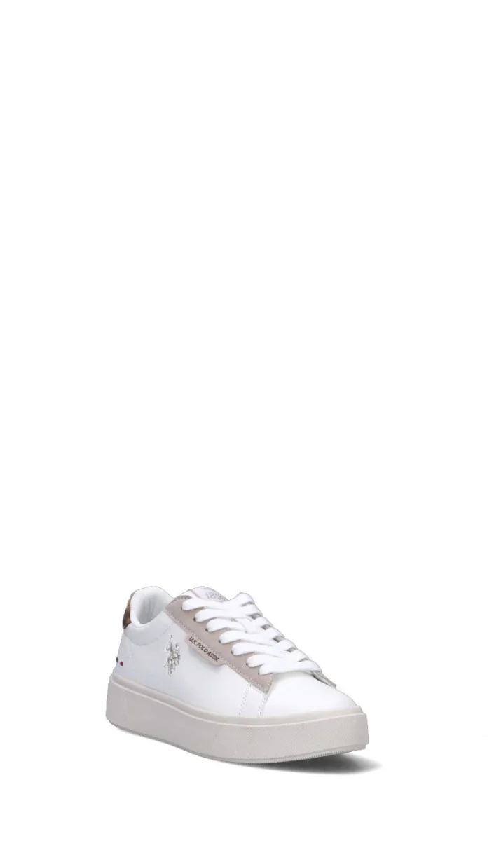 U.S. POLO ASSN. Sneaker donna bianca e marrone in materiale sintetico. Sportiva e versatile, questa sneaker bianca in materiale sintetico รจ la compagna ideale per le donne che amano uno stile casual ma curato. I lacci aggiungono un tocco dinamico, mentre la tonalitร neutra permette abbinamenti infiniti. Perfetta per le tue giornate piรน attive!