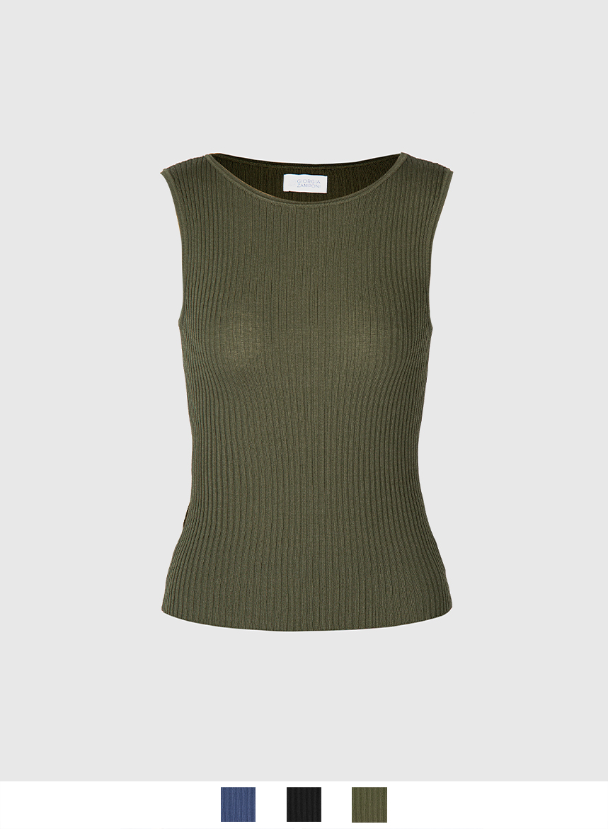 Top di Maglia Coste in Viscosa Stretch – Militare