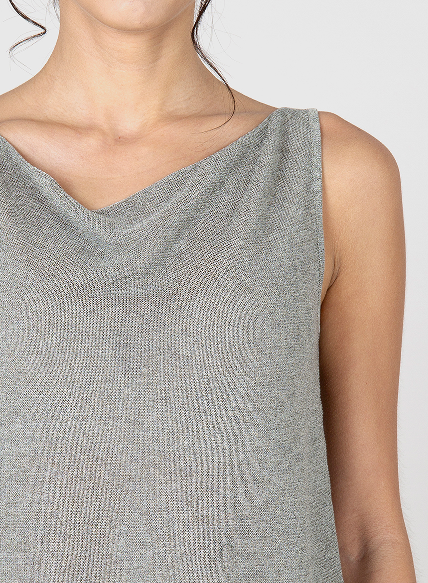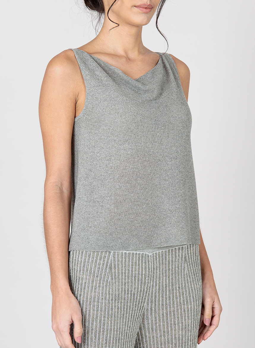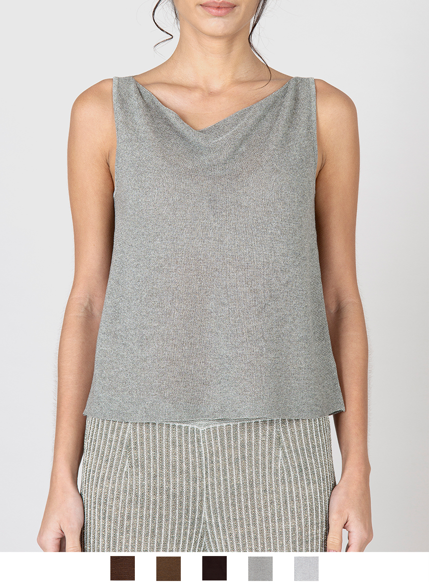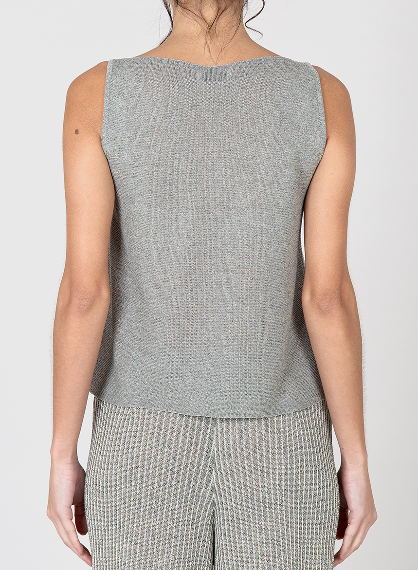 Top di maglia rasata in Viscosa dalla vestibiliร comfort. Smanicato con scollo morbido a plio. Il filato utilizzato per questo capo รจ stato prodotto con Viscosa proveniente da fonti responsabili. La certificazione MIX FSCยฎ garantisce che la cellulosa provenga da foreste gestite in modo sostenibile dal punto di vista ambientale e sociale. La modella รจ alta 175 cm e indossa una taglia M.