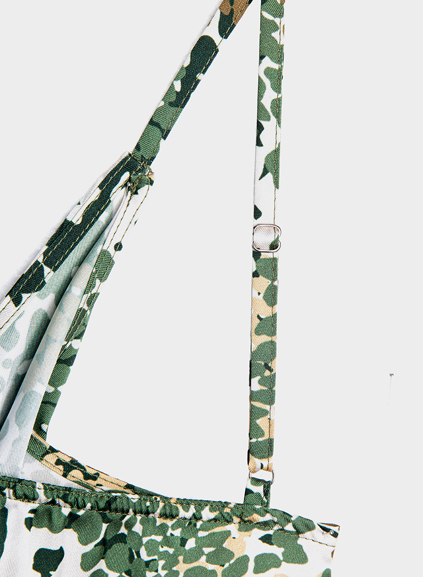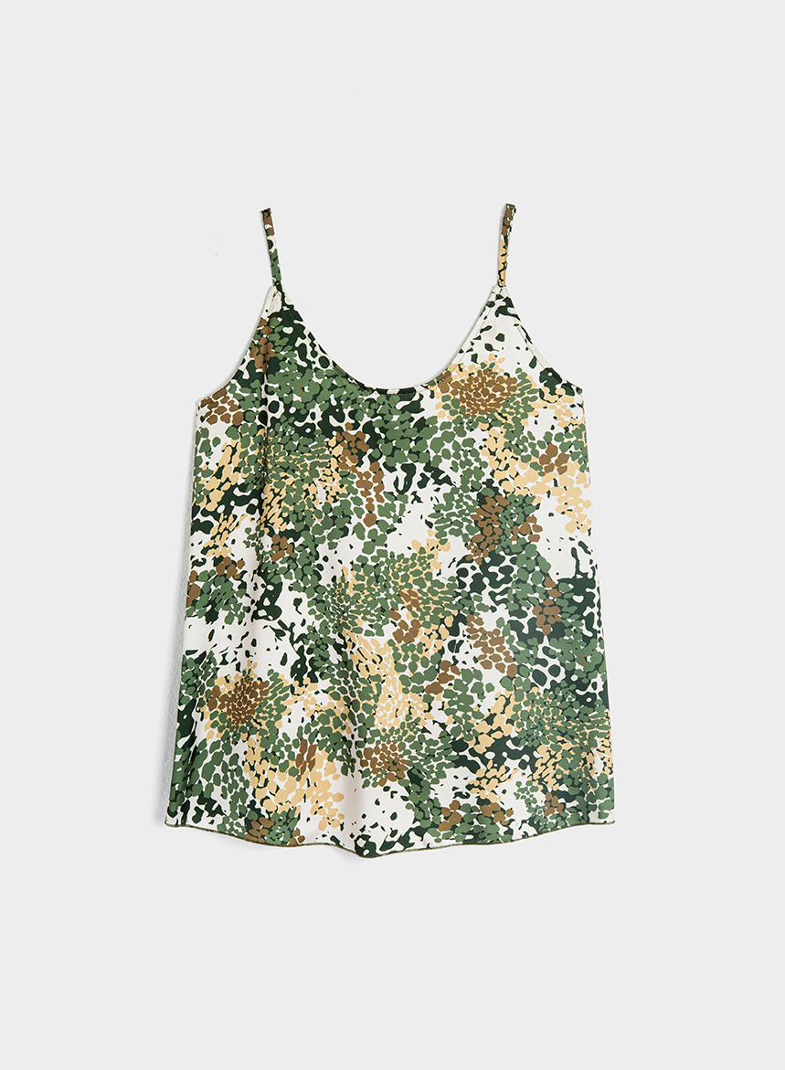 Top fluido smanicato con spalline sottili, in morbido Twill. La modella รจ alta 176 cm e veste una tg 40.