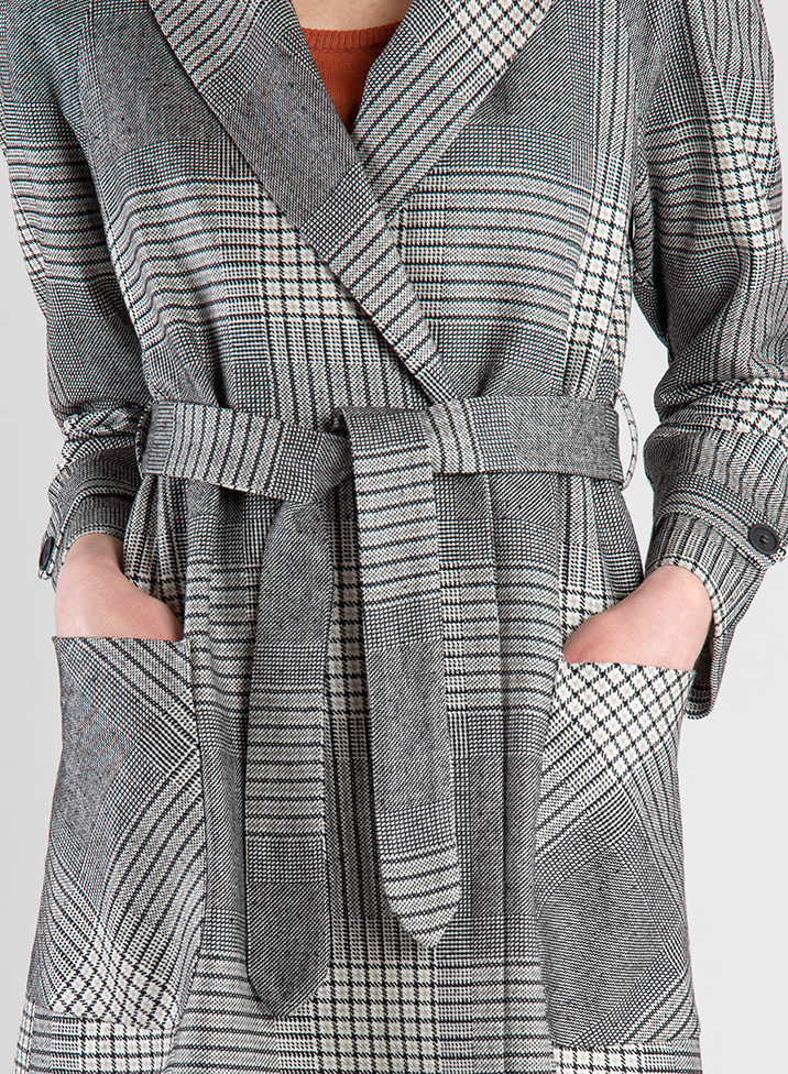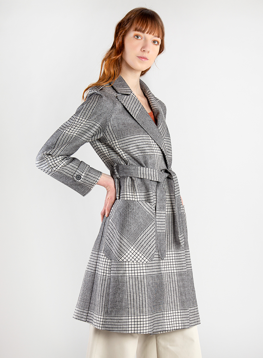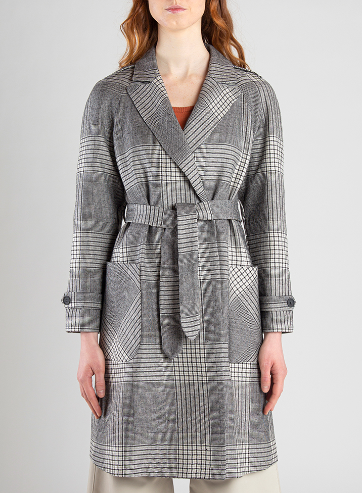 Trench classico con tasche laterali applicate, in Cotone e Seta e fodera interna. La modella รจ alta 175 cm e veste una taglia 40.
