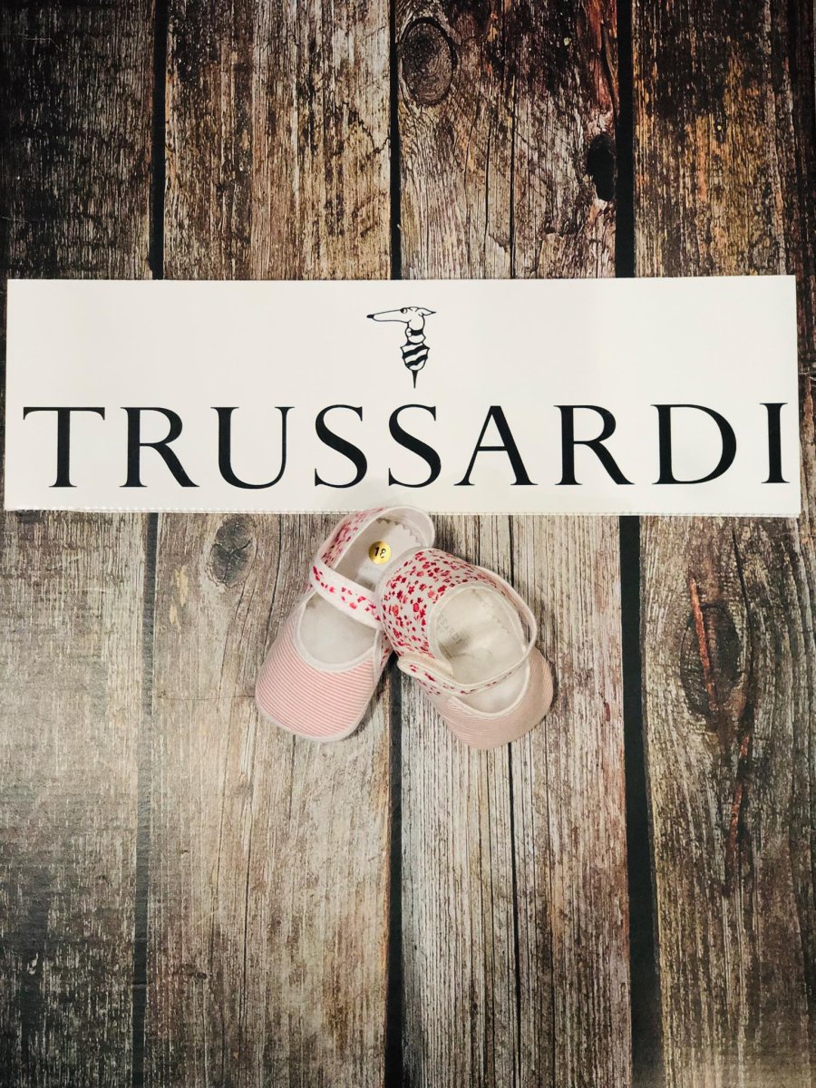 TRUSSARDI SCARPETTE TRUSSARDI SCARPETTE chiusura con cinturino a strappo colore: bianco con rifiniture in rosso taglia: dal 15 al 19